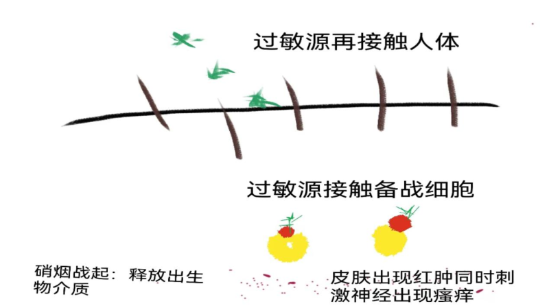 第二阶段:过敏出现症状,可反复出现,所以避免再次接触过敏原很重要哦!