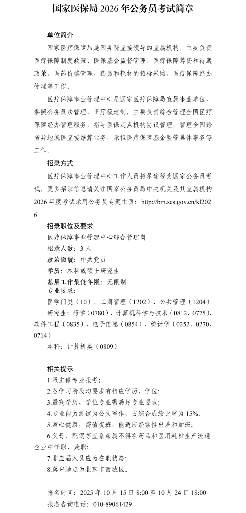 截至2025年10月17日11:00,国家医疗保障局医疗保障事业管理中心综合管理岗已报名1564人。针对报考过程中考生咨询的常见问题,现统一作以下解答。
