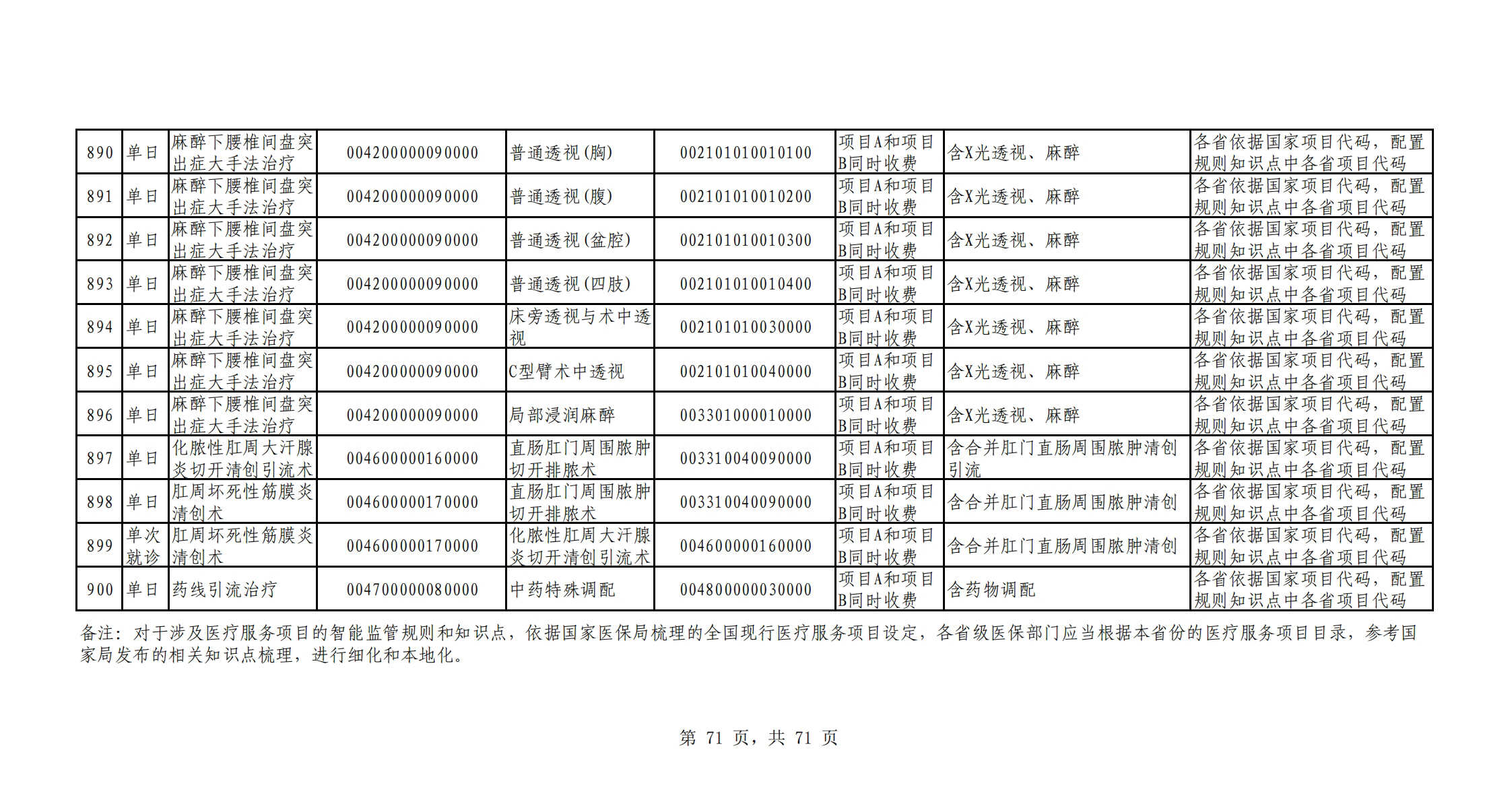 需要说明的是,对于涉及医疗服务项目的智能监管规则和知识点,我们是依据国家医保局梳理的全国现行医疗服务项目设定的,是为全国“打样”,各省级医保部门应当结合本省份的医疗服务项目目录,参考国家医保局发布的相关知识点梳理,进行细化和本地化。对于相关知识点涉及的医保药品、医用耗材代码等,受梳理工作与发布工作时间差影响,可能存在最新代码未纳入的情况,各省级医保信息平台在本地化过程中,应结合最新的医保药品、医用耗材分类与代码数据库更新情况进行增补。