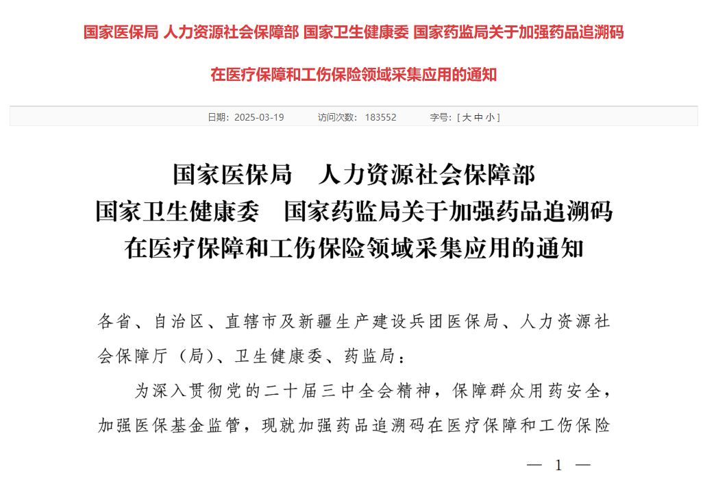 全面建立药品追溯机制事关医保基金安全、事关患者用药安全、事关人民健康福祉。习近平总书记指出,“建立完善药品信息追溯体系,努力做到药品从出厂到患者每一个环节处于来源可溯、去向可查的状态”。今年《政府工作报告》强调,“全面建立药品耗材追溯机制,严格医保基金监管”。