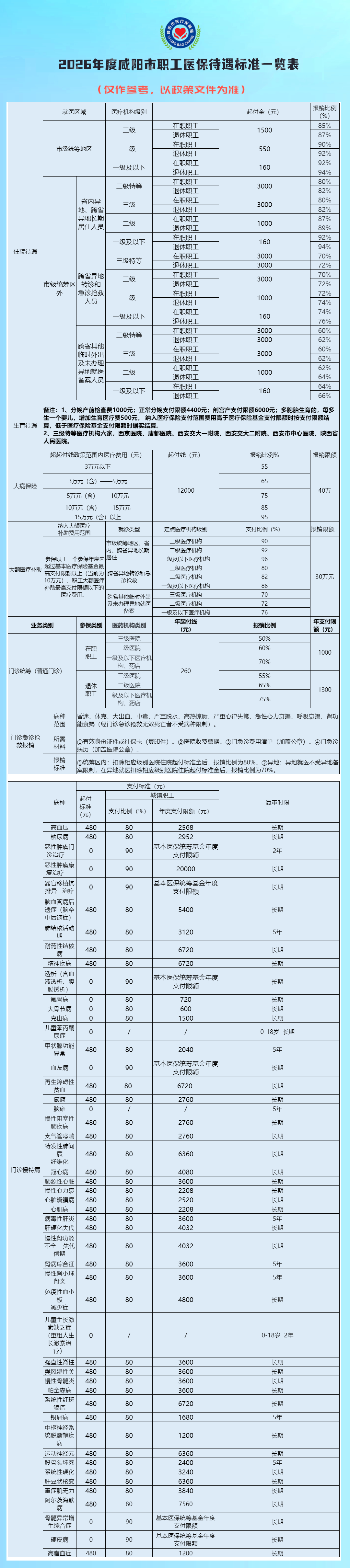 延展阅读:2026年度咸阳市居民医保待遇标准一览表