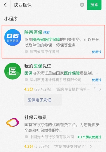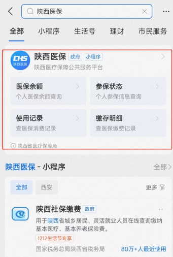 (2)小程序:微信/支付宝搜索陕西医保小程序。