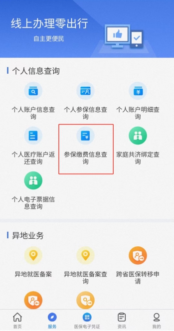 (2)使用人(城乡居民)查询:可自己注册陕西医保APP或微信、支付宝小程序通过【服务】—【参保缴费信息查询】查看缴费记录。