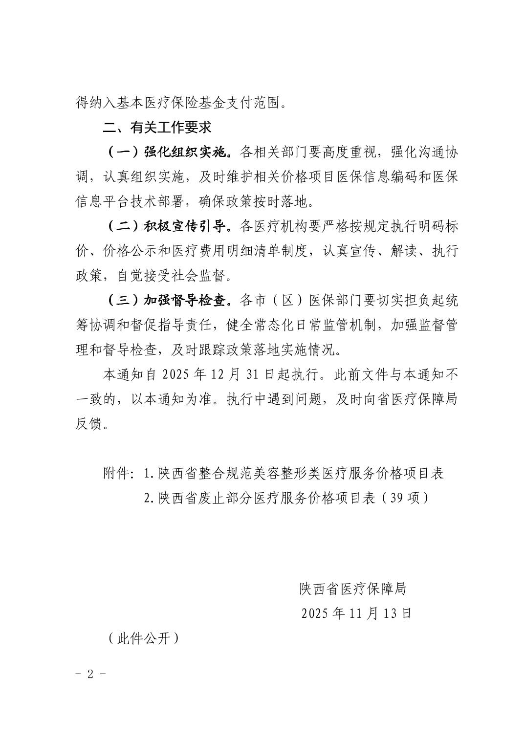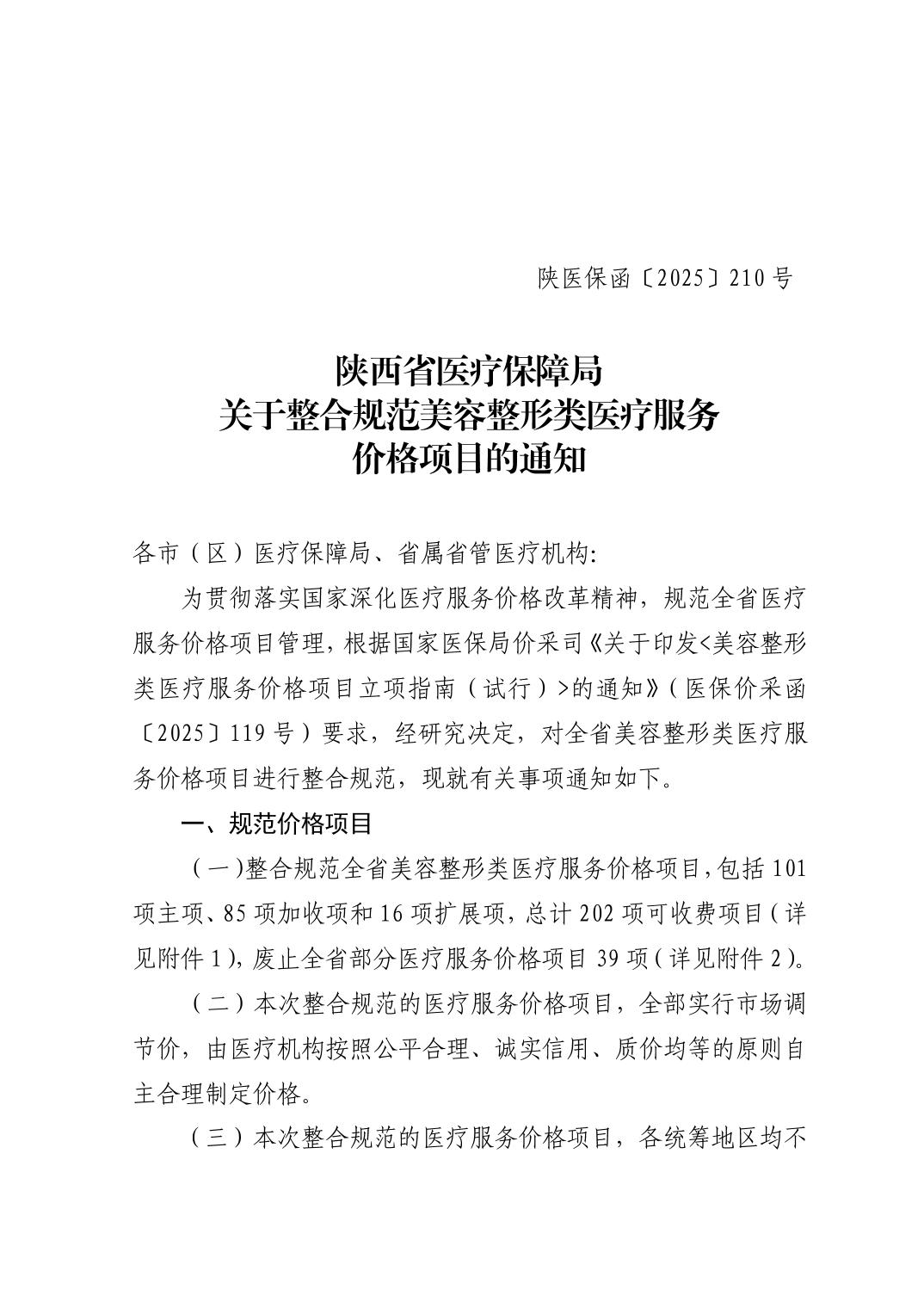 陕西省医疗保障局关于整合规范美容整形类医疗服务价格项目的通知