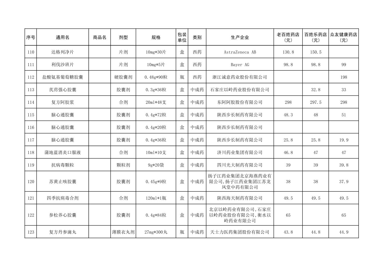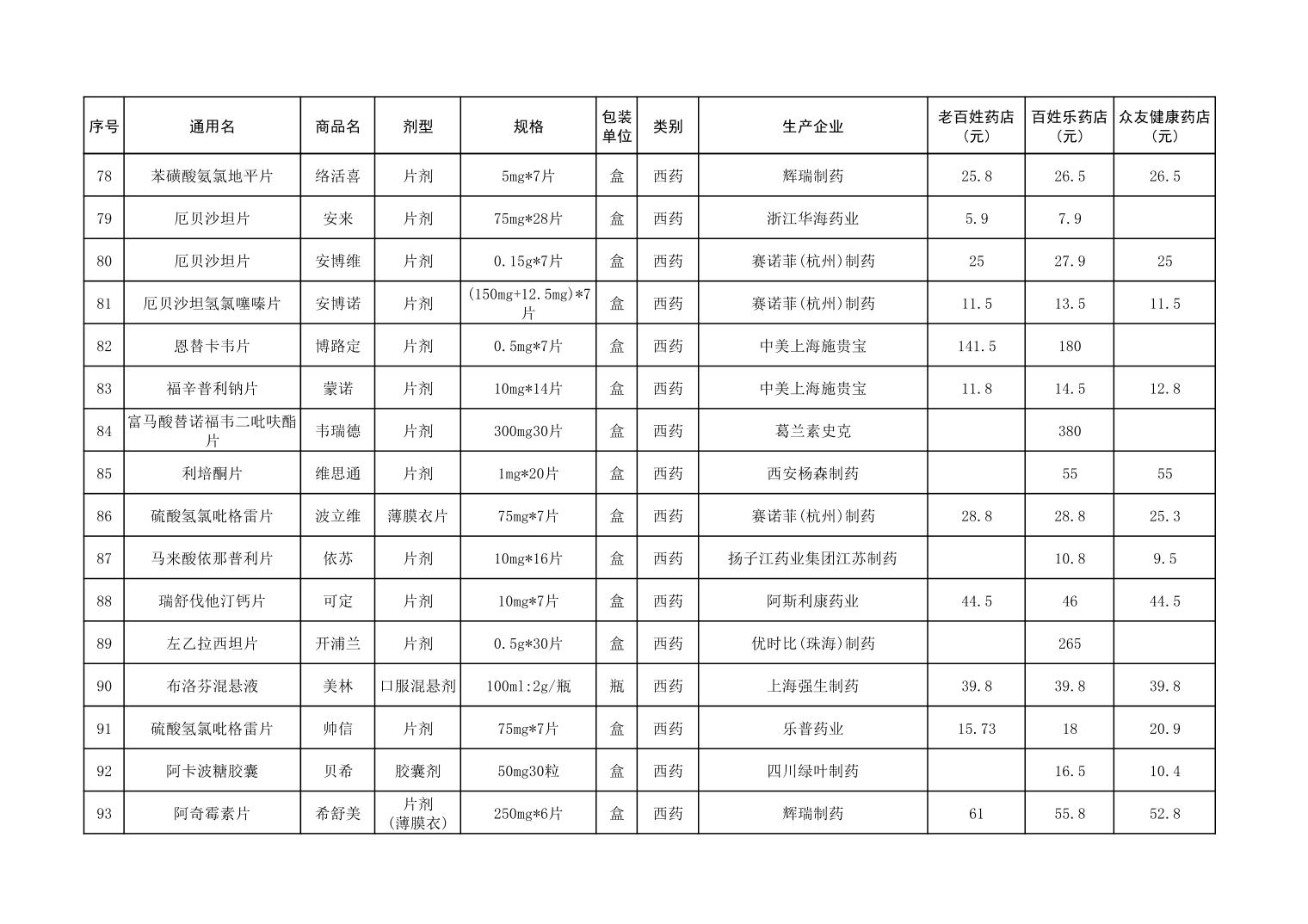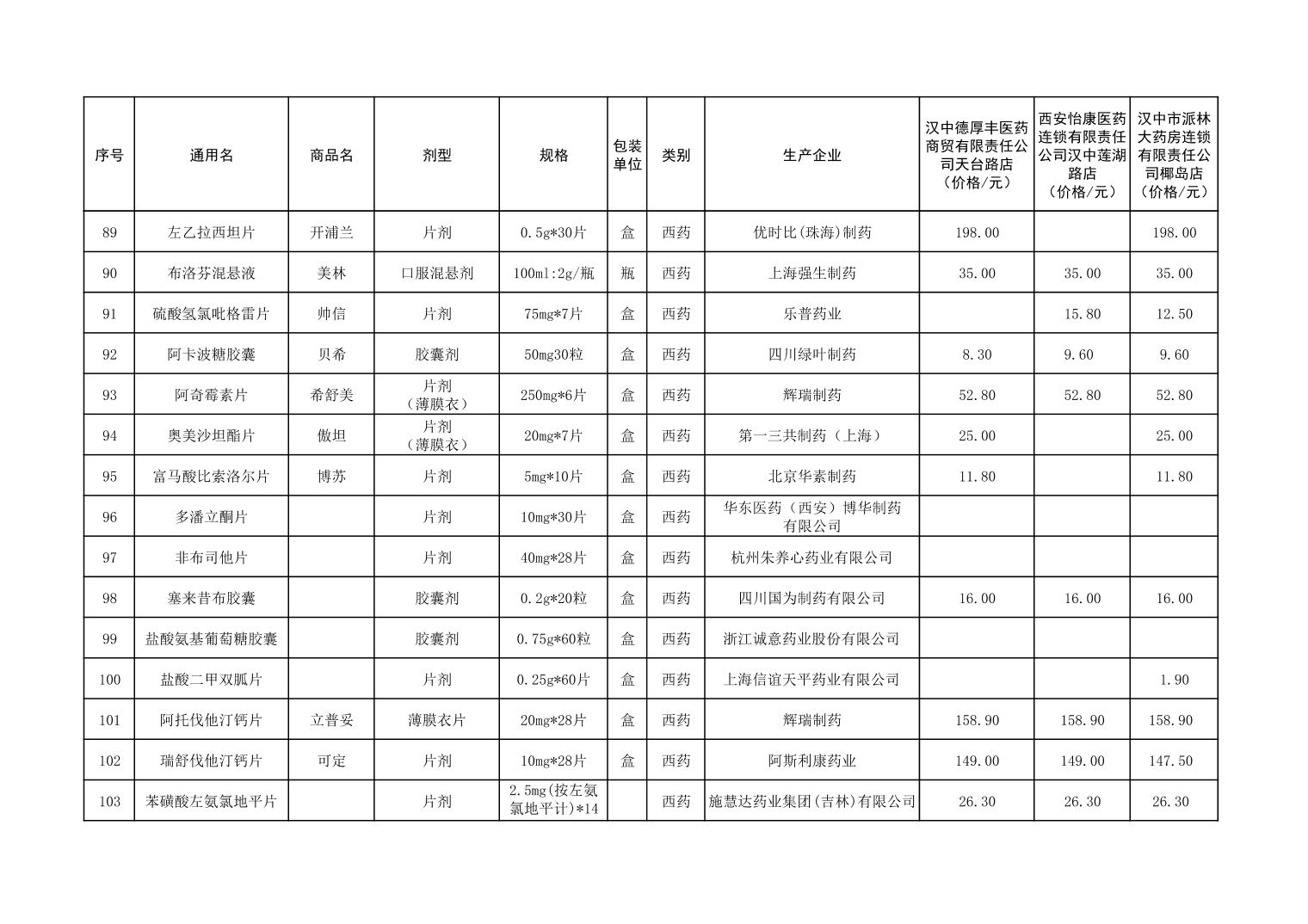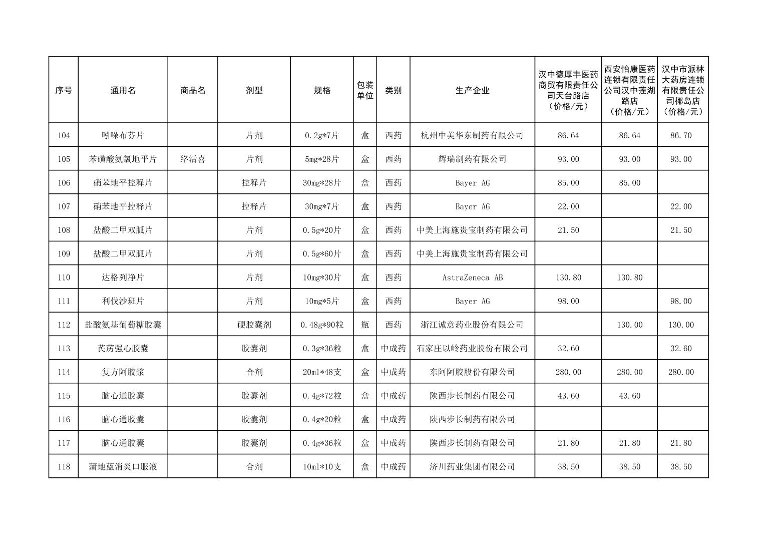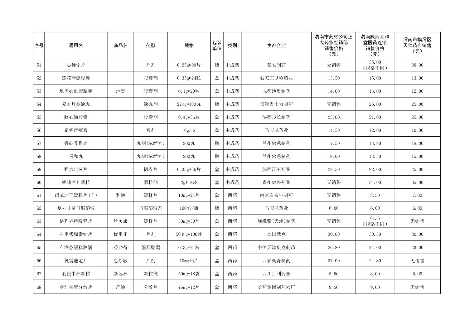 各市(区)部分定点药店常用药品零售价格监测情况 (2025年第9期)