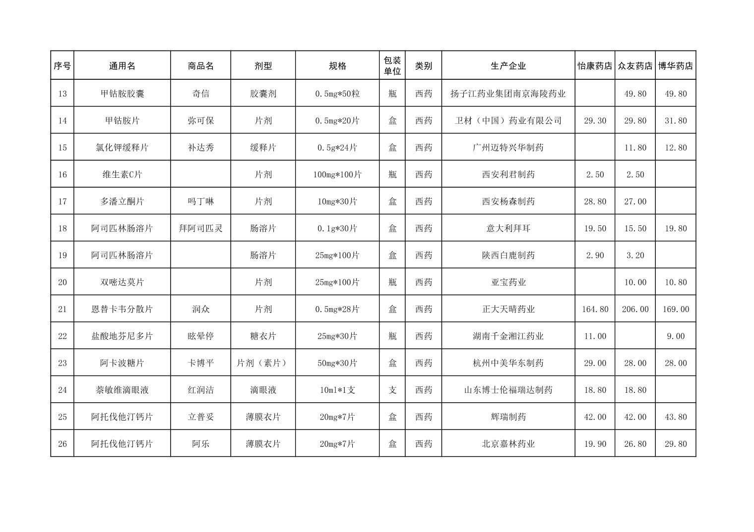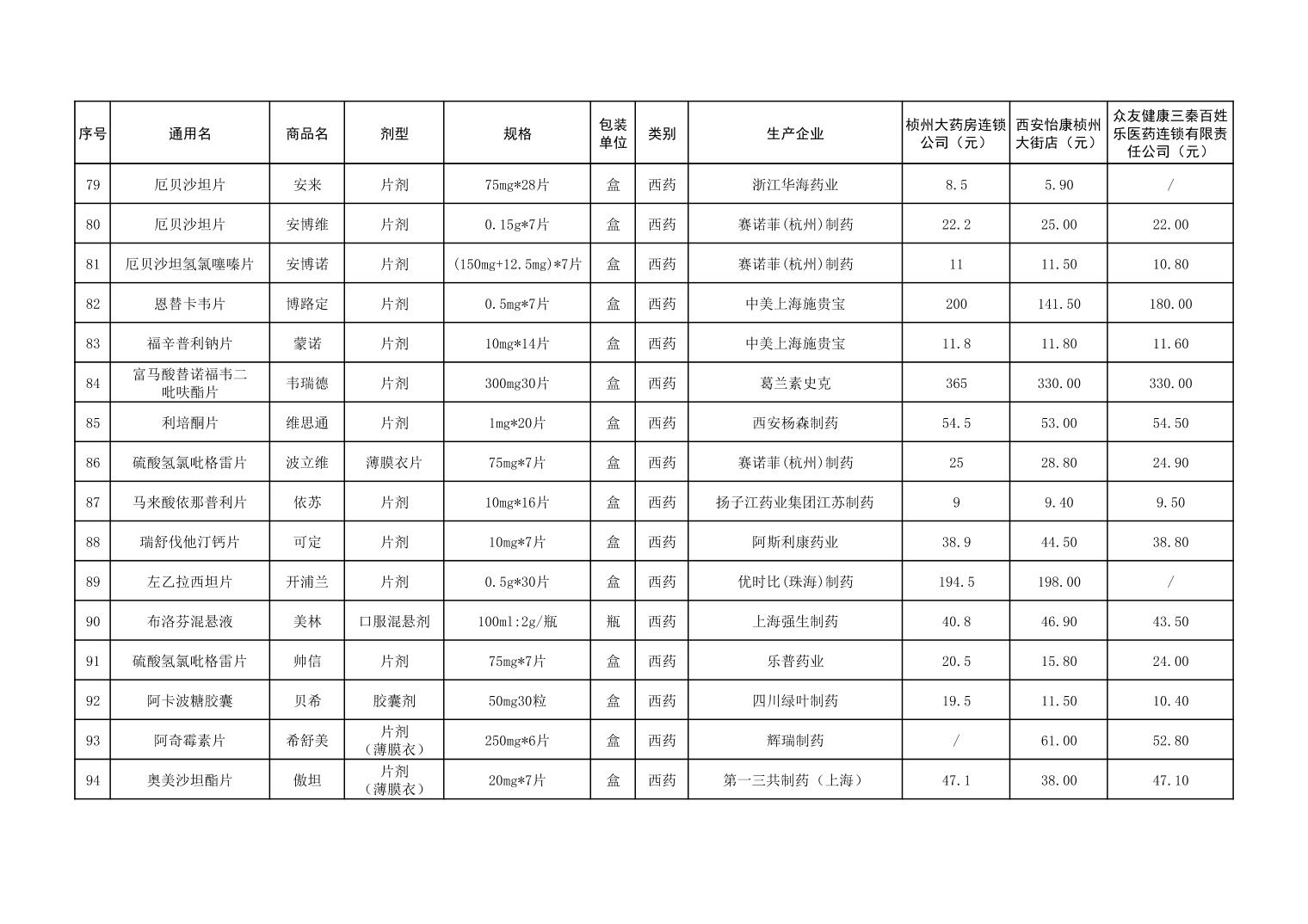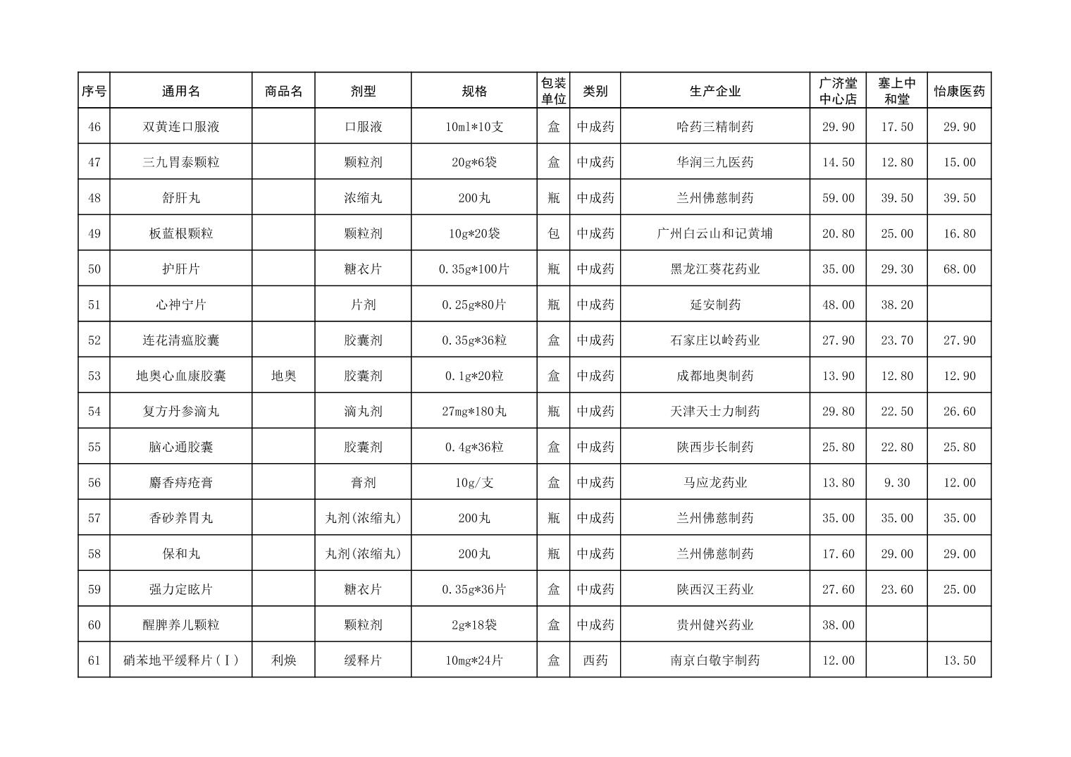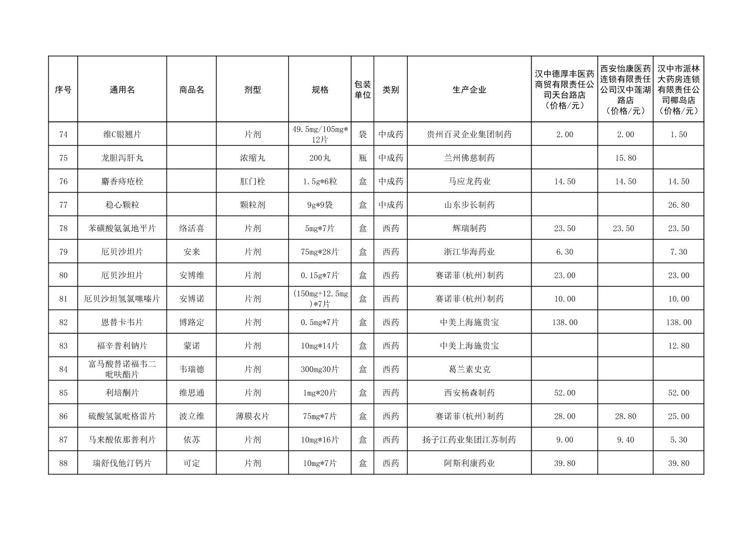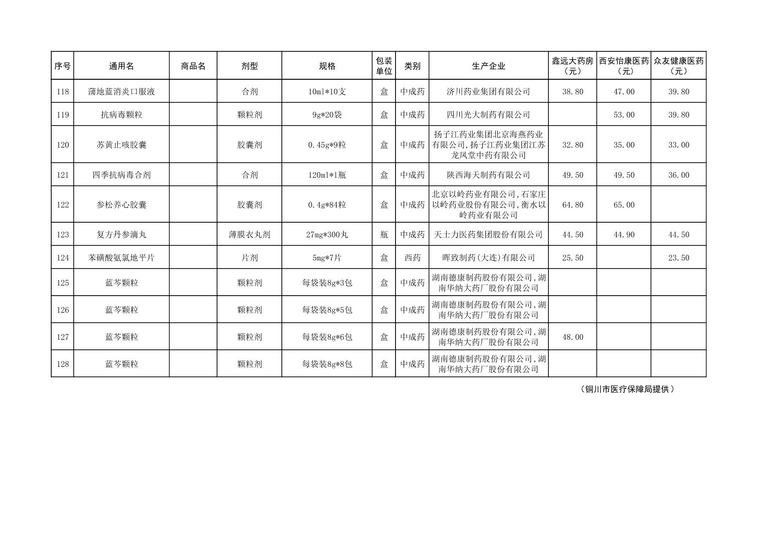 各市(区)部分定点药店常用药品零售价格监测情况 (2025年第9期)