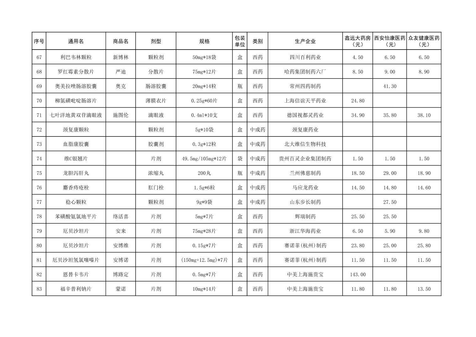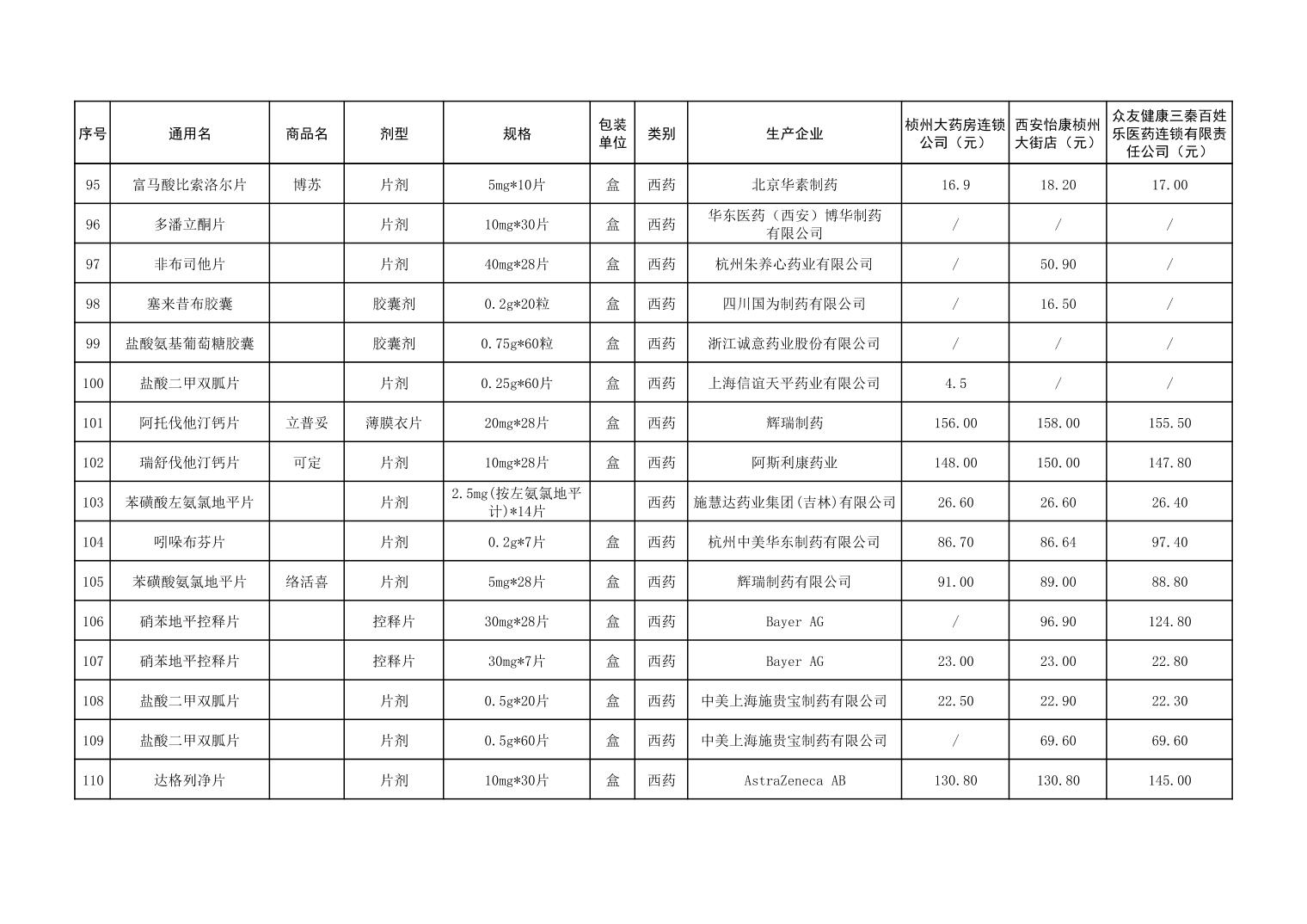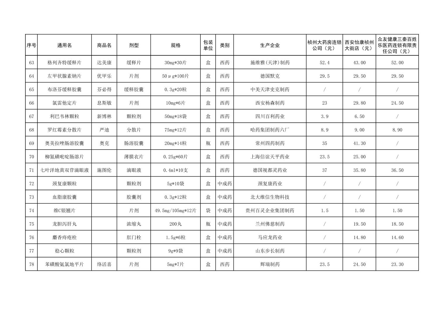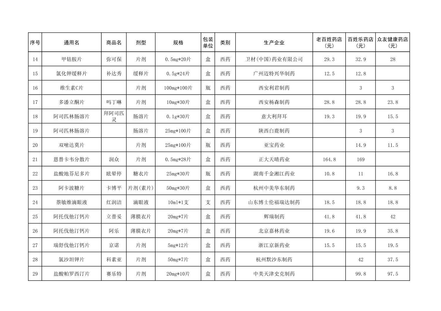各市(区)部分定点药店常用药品零售价格监测情况 (2025年第9期)