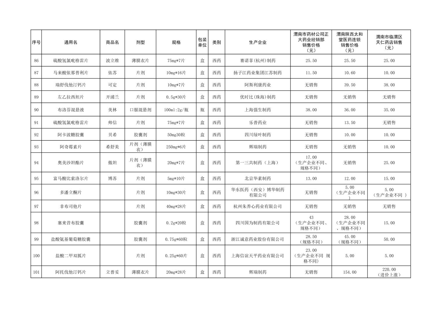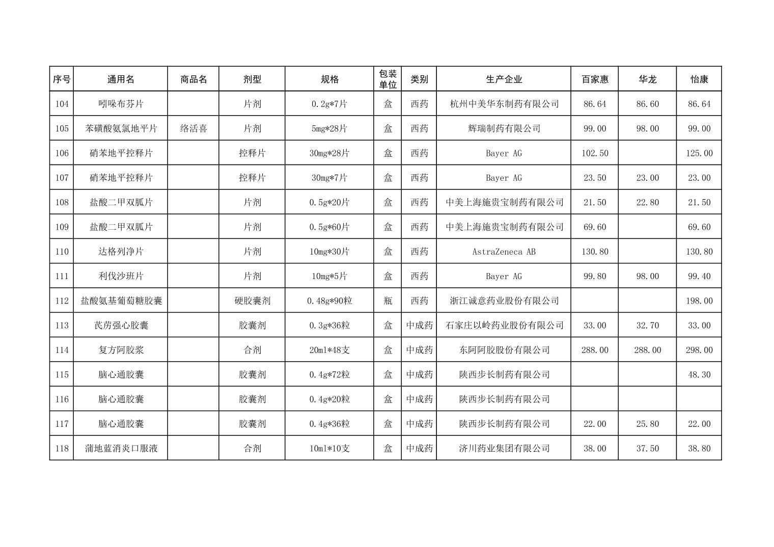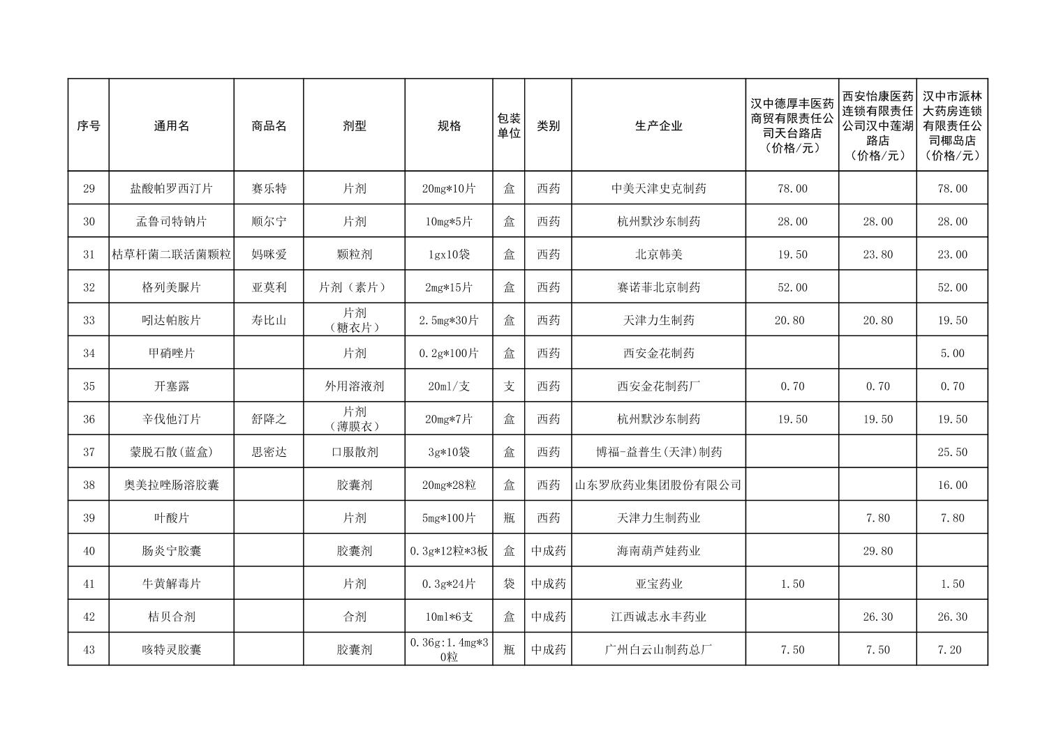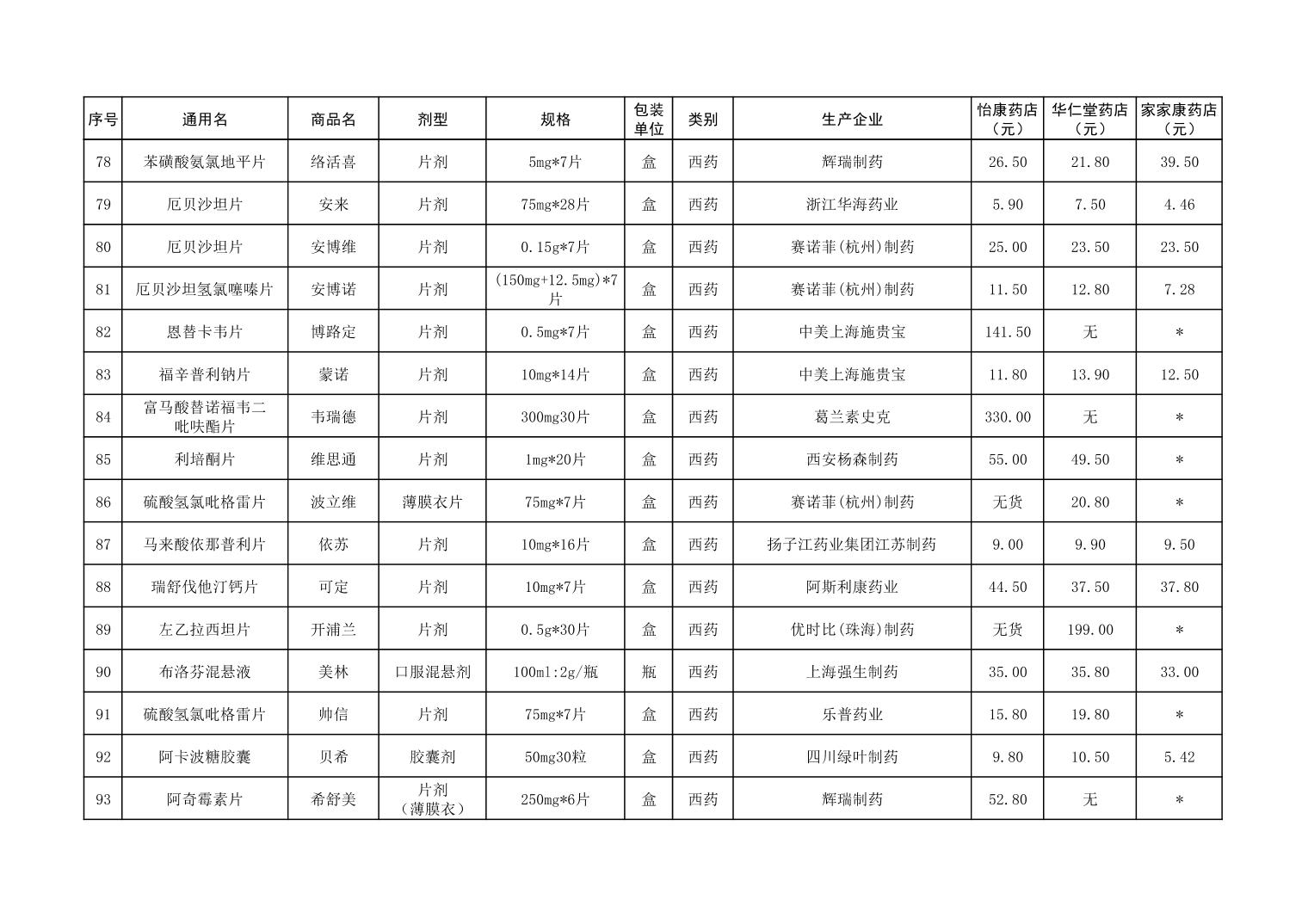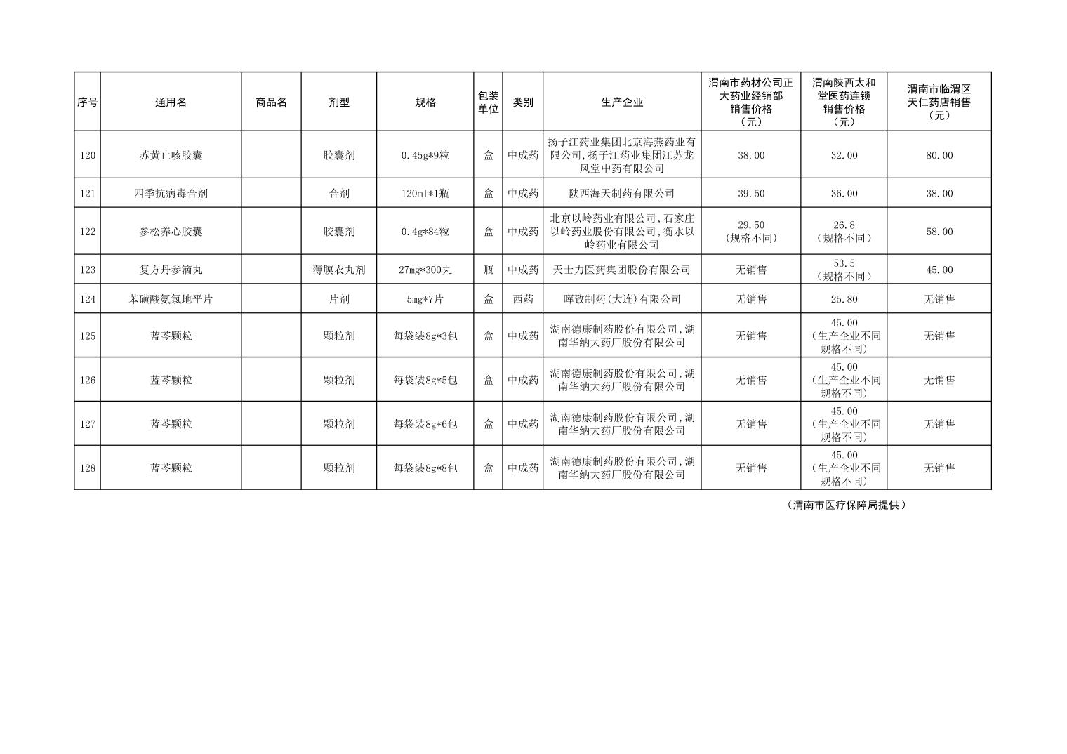 各市(区)部分定点药店常用药品零售价格监测情况 (2025年第9期)