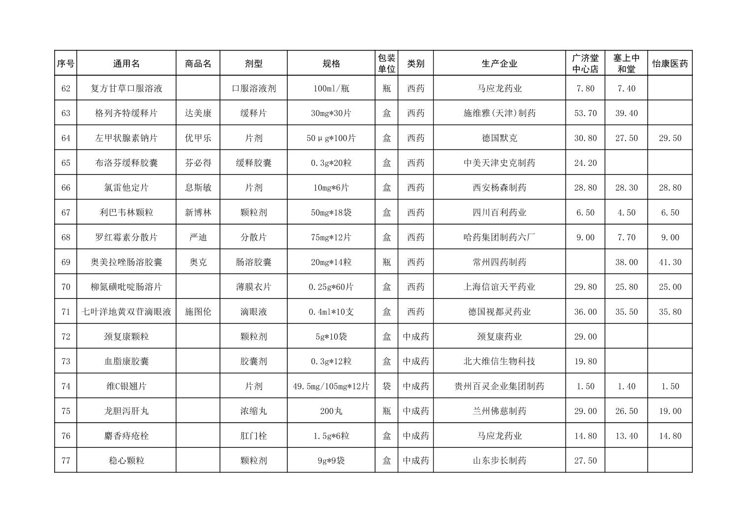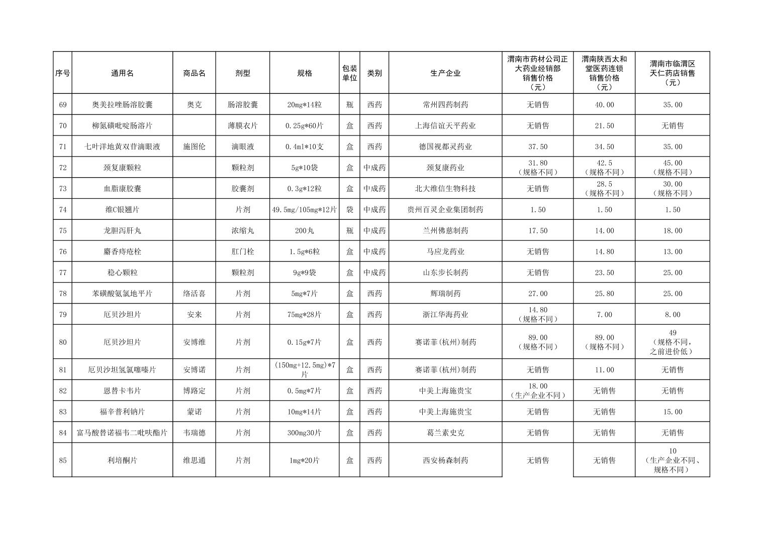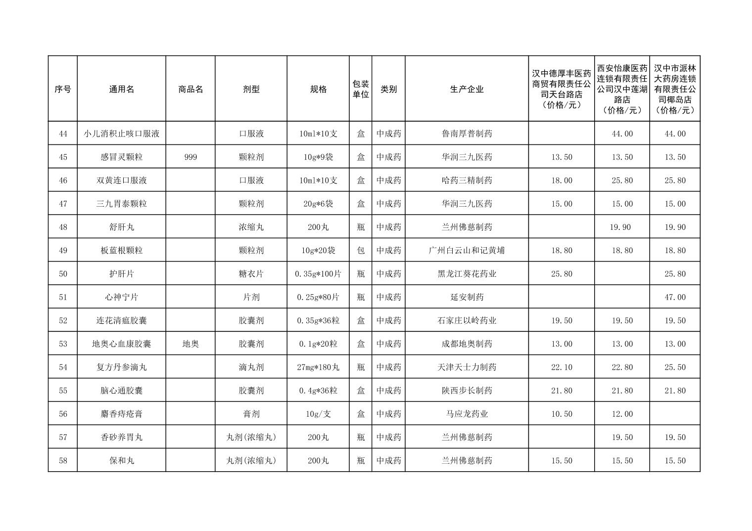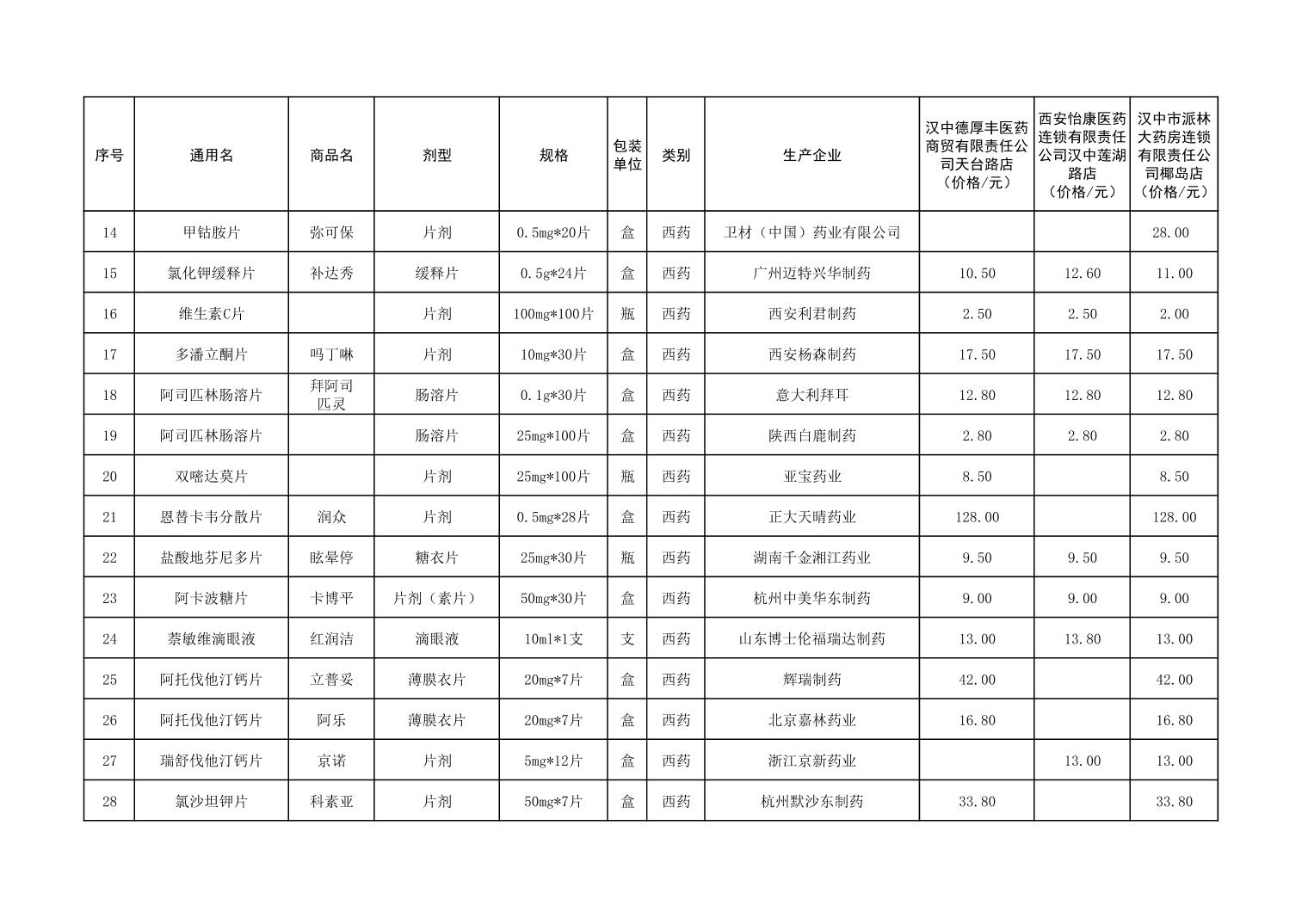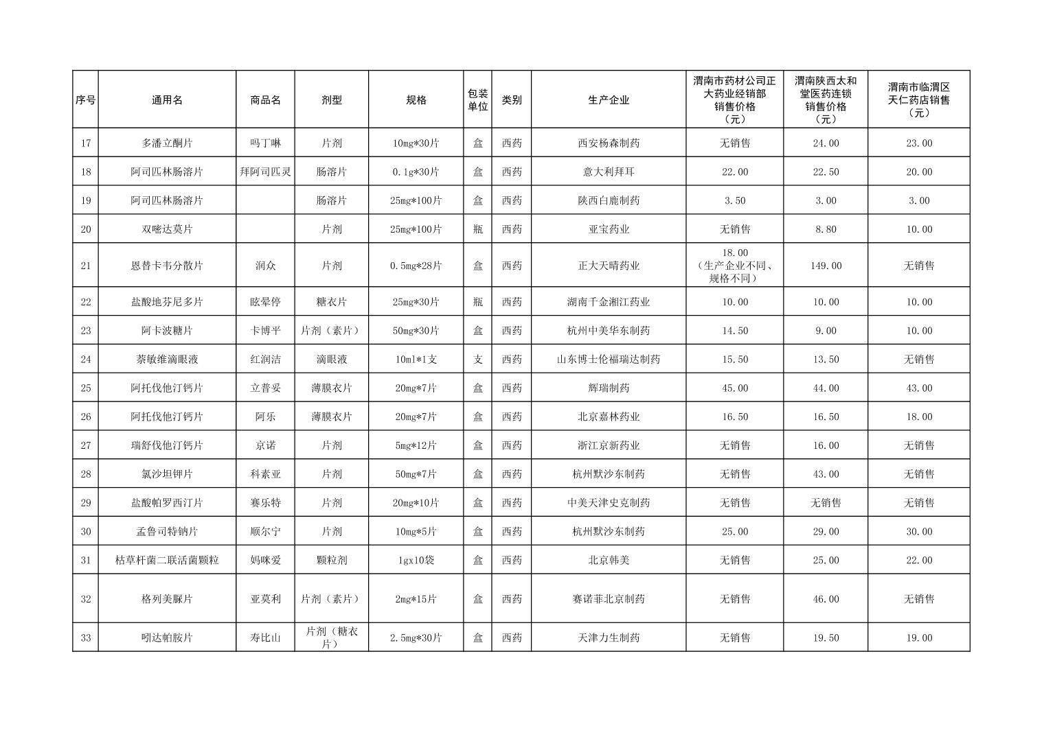 各市(区)部分定点药店常用药品零售价格监测情况 (2025年第9期)