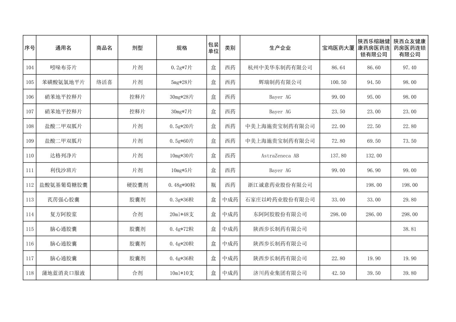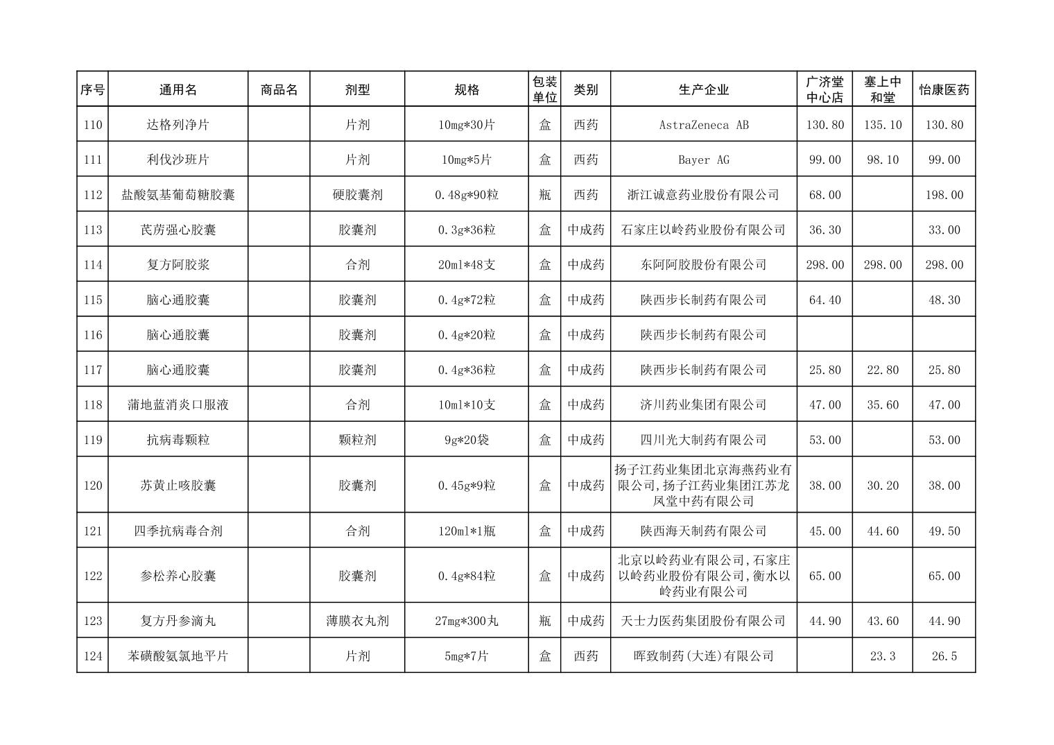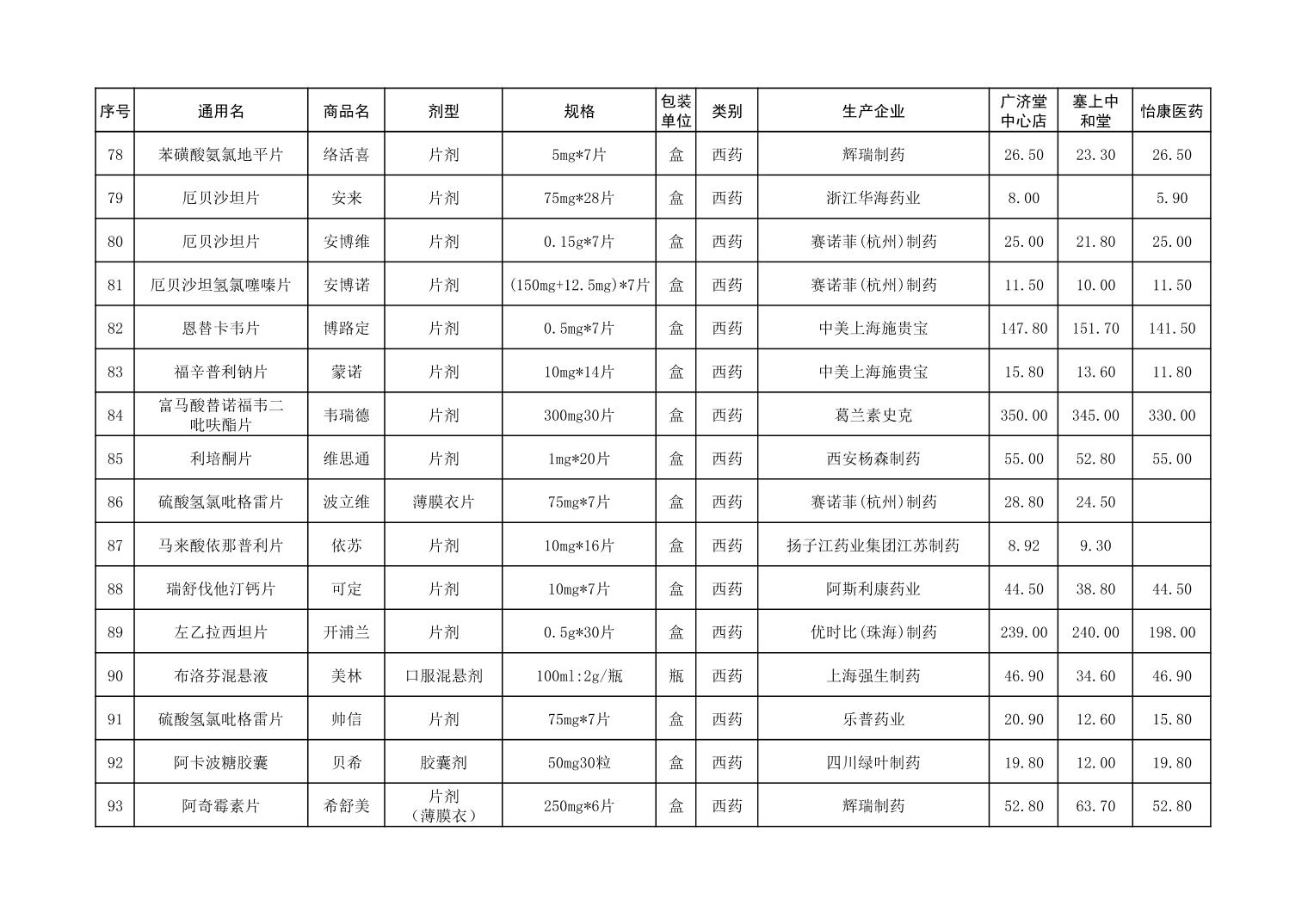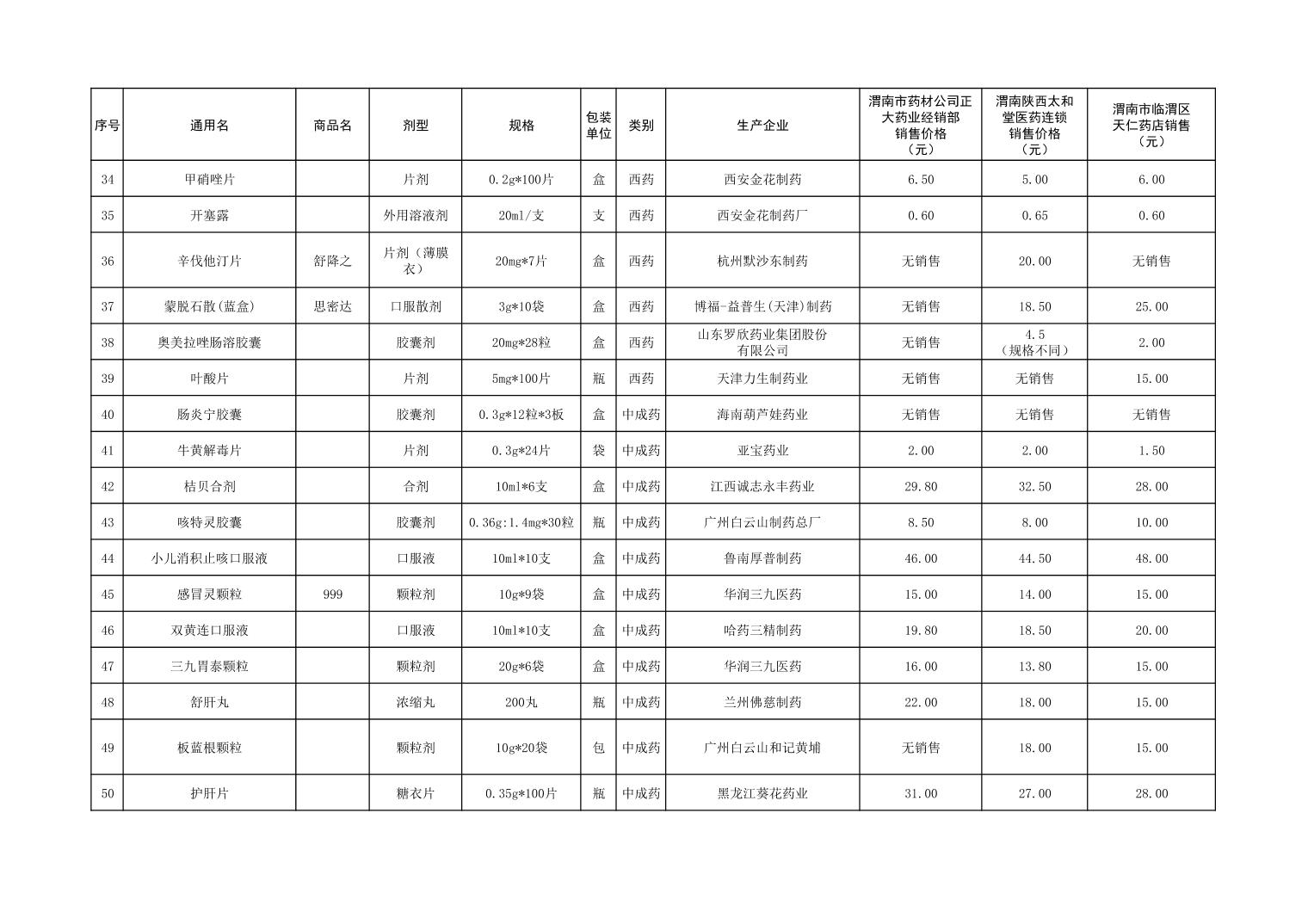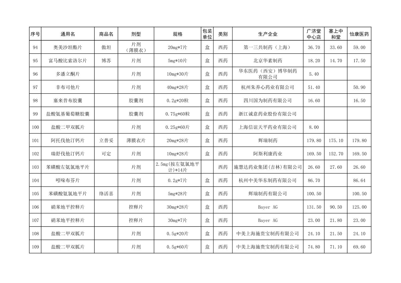 各市(区)部分定点药店常用药品零售价格监测情况 (2025年第9期)