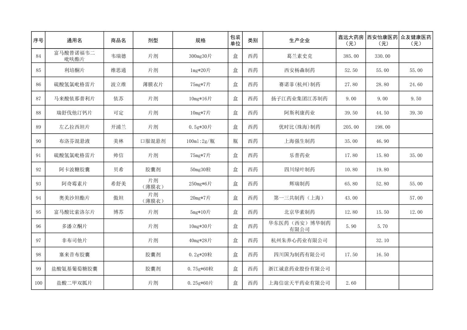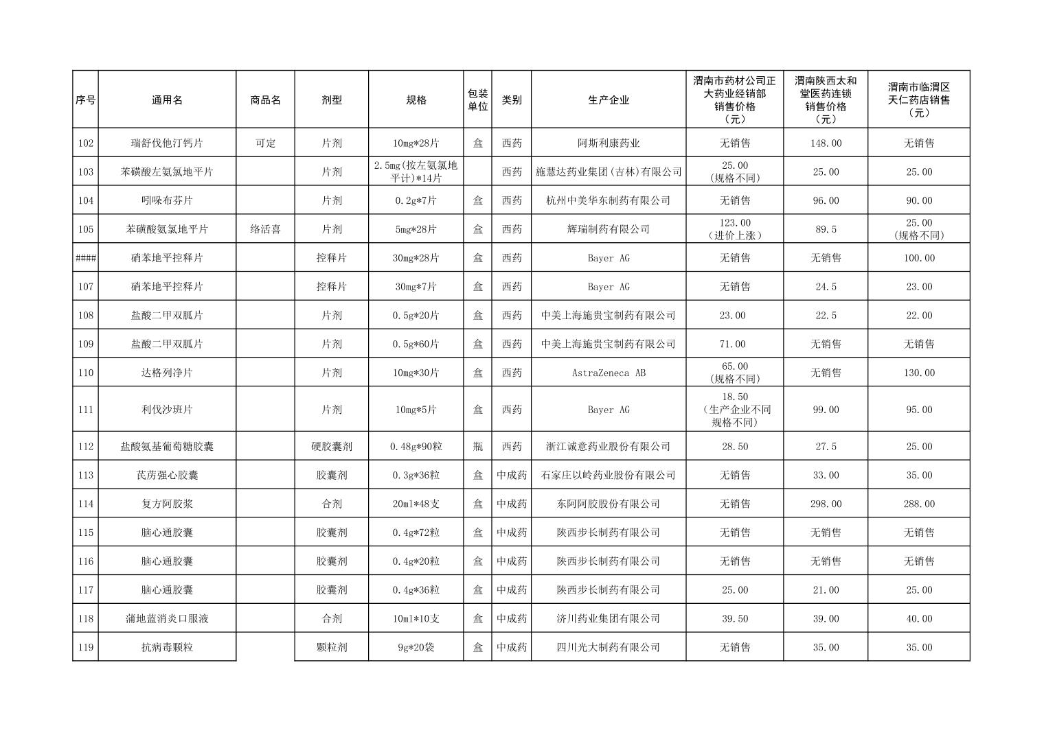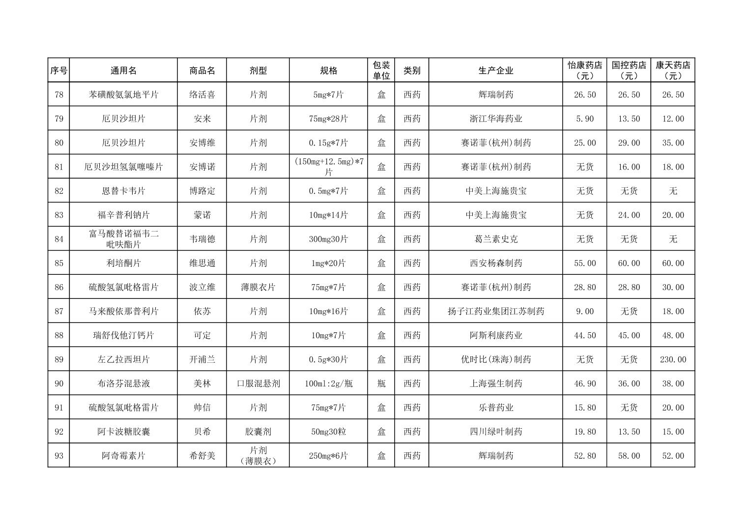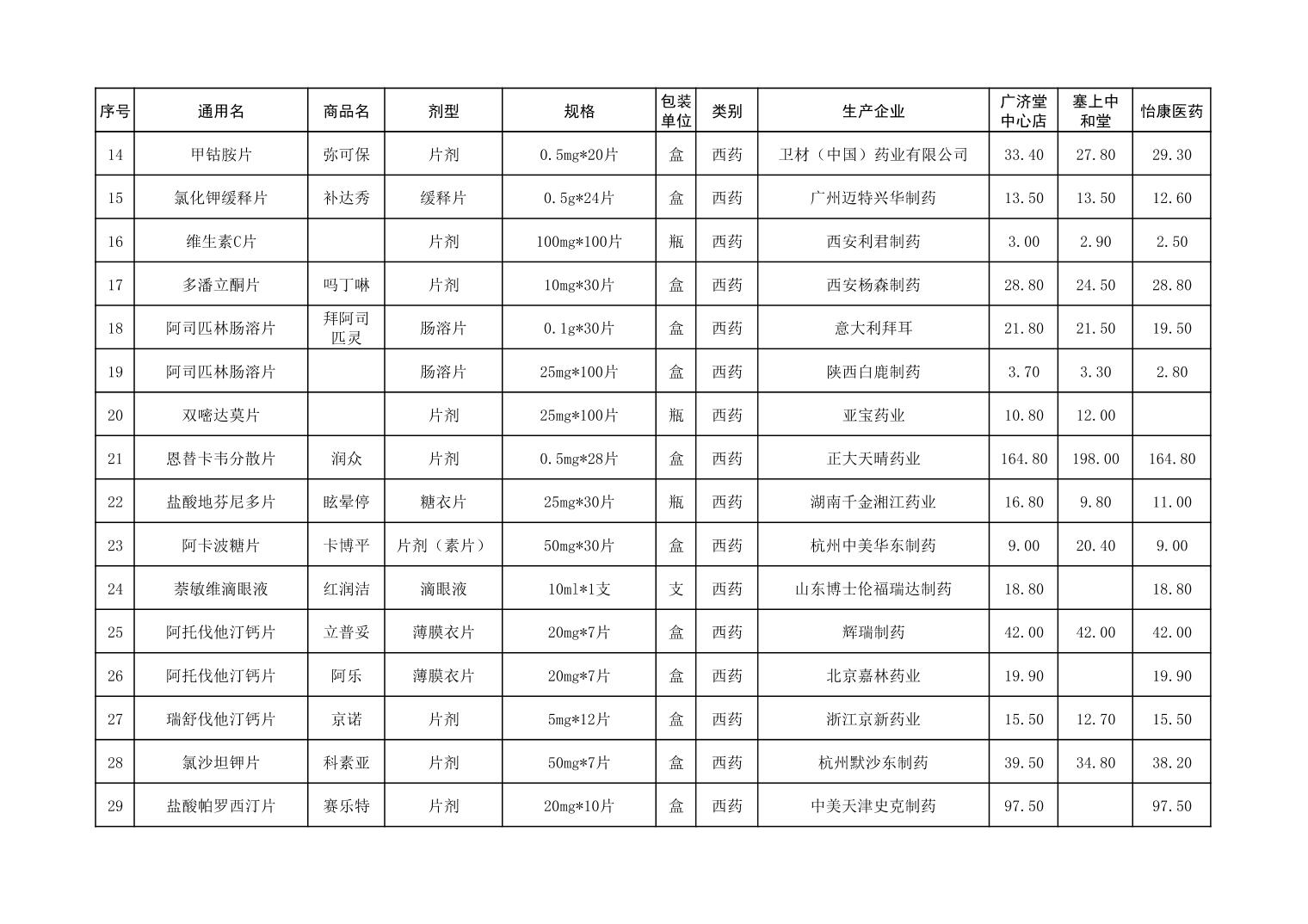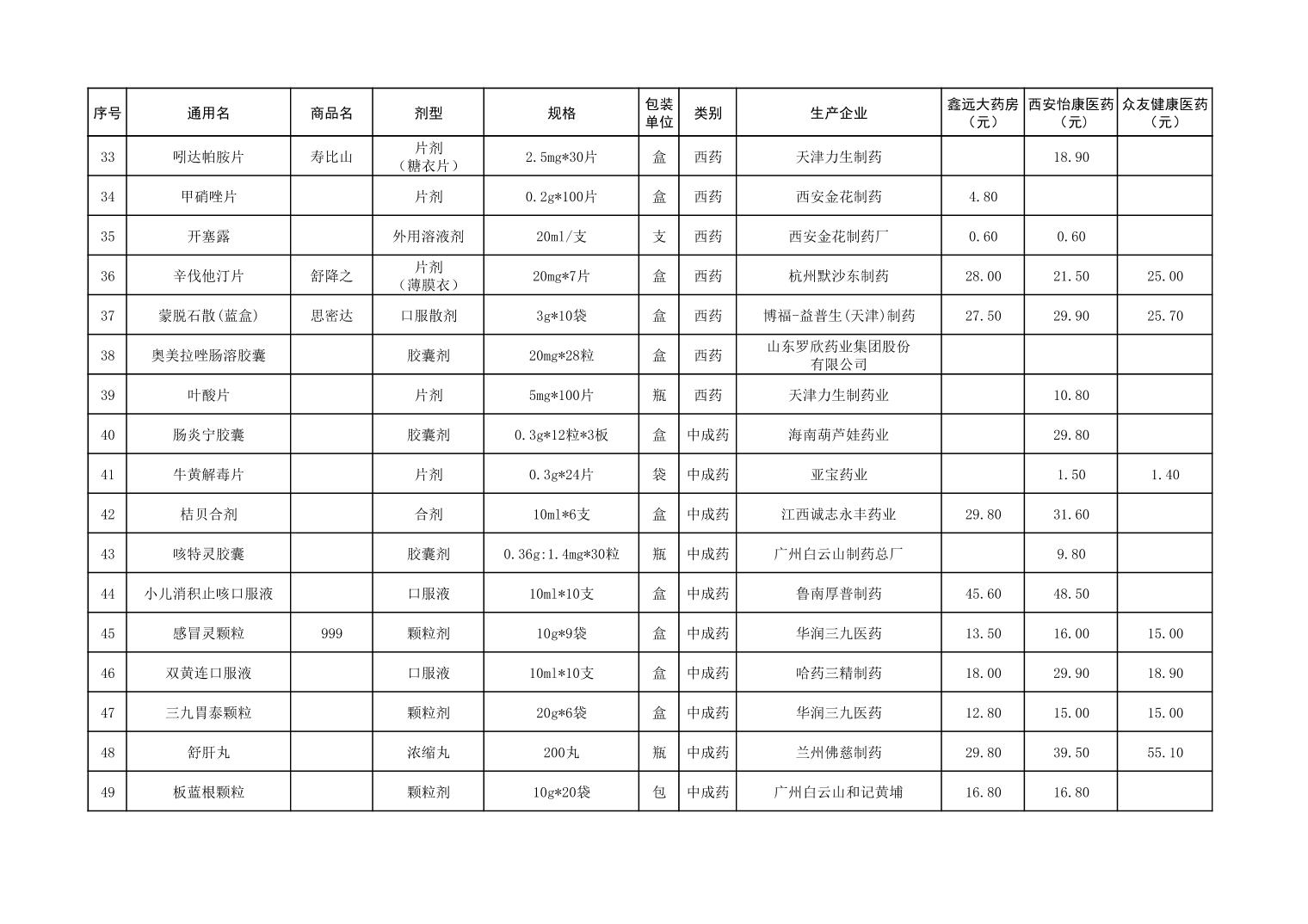 各市(区)部分定点药店常用药品零售价格监测情况 (2025年第9期)
