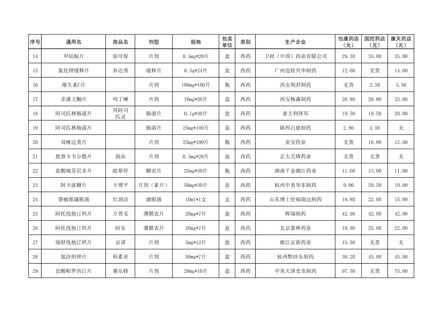 药品价格监测