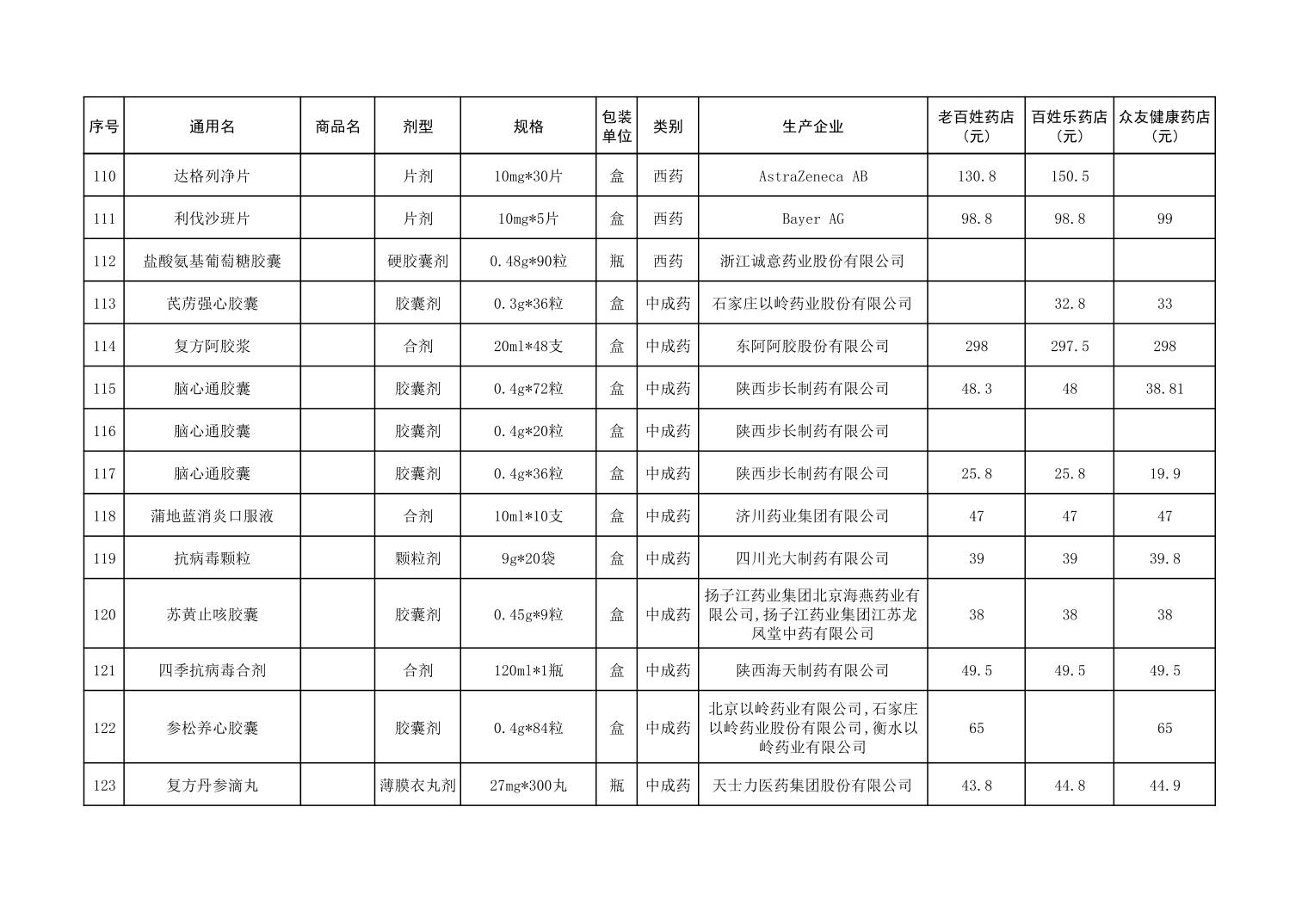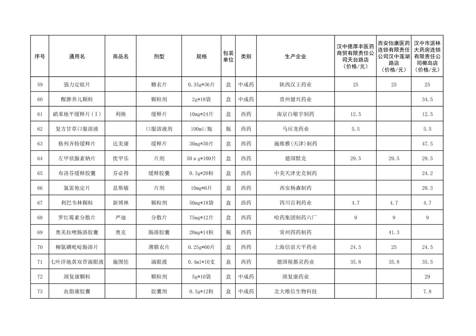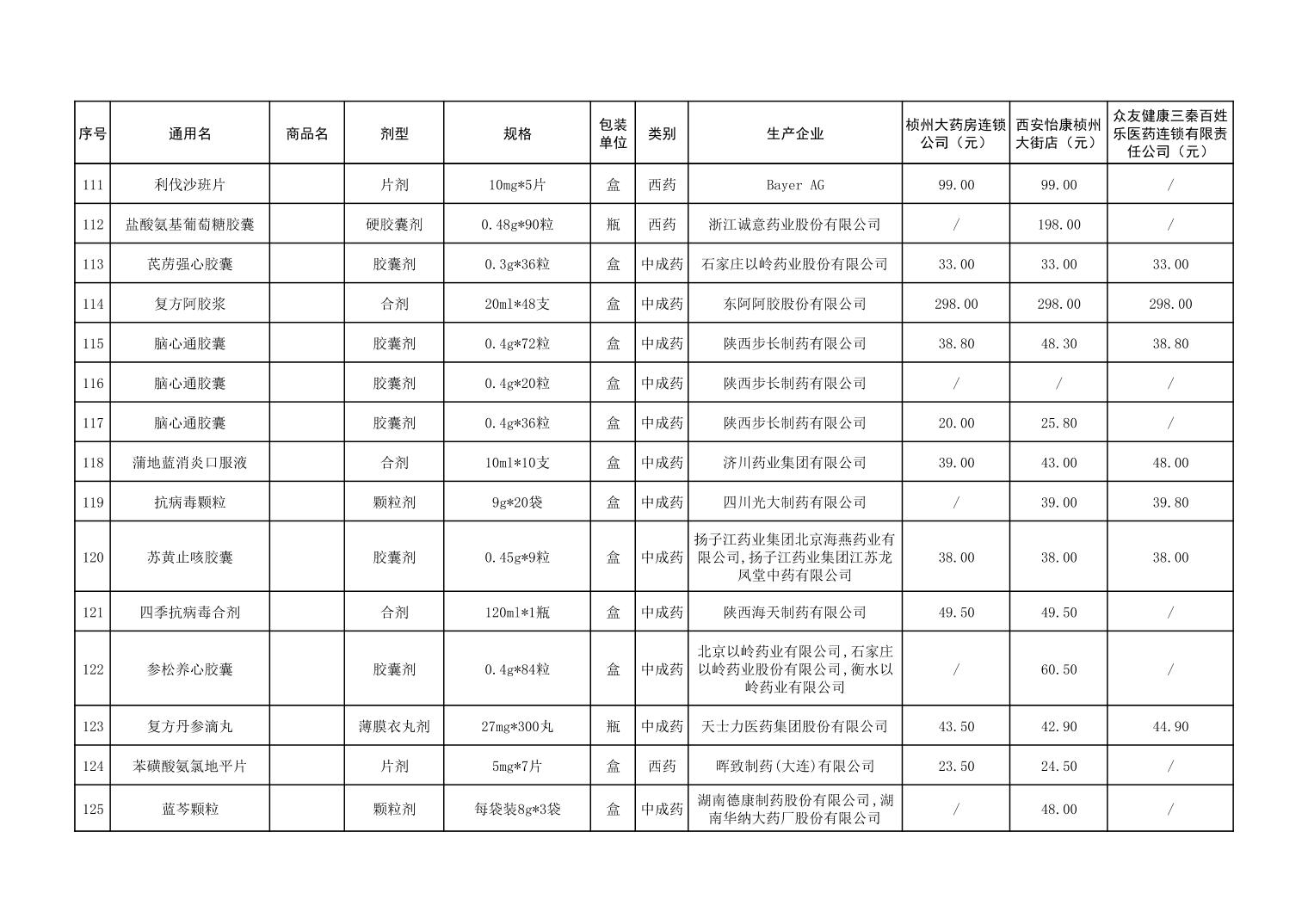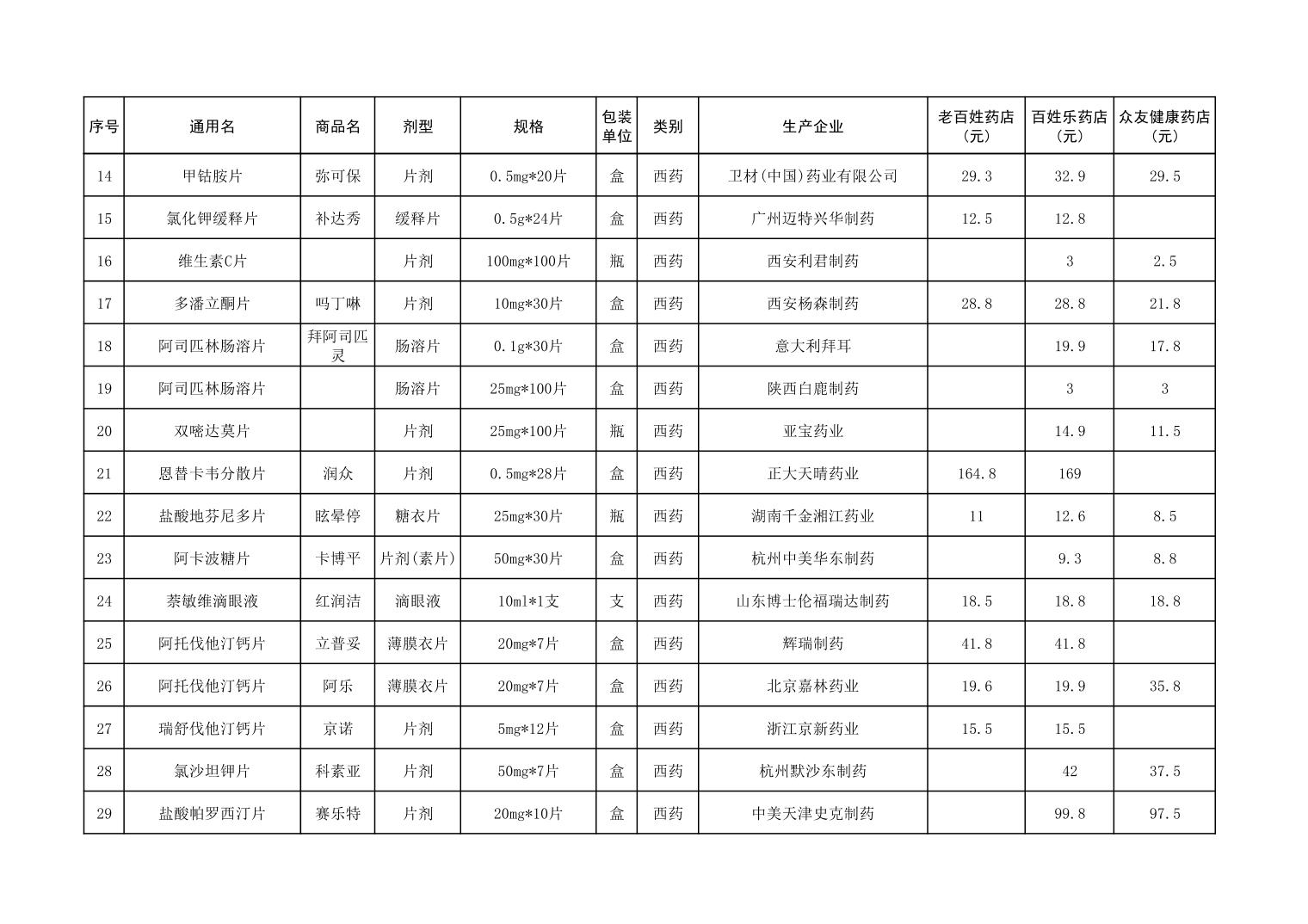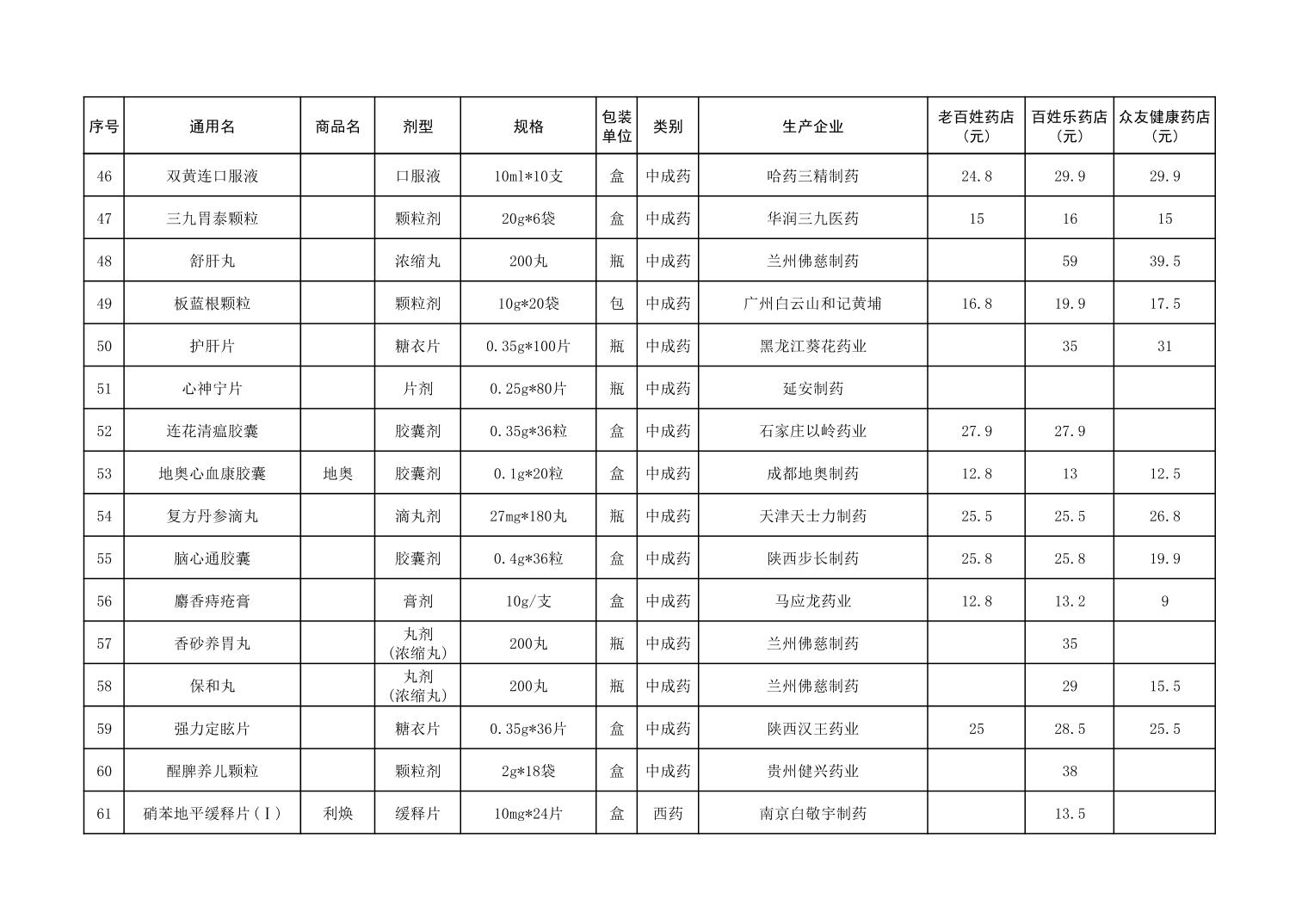 各市(区)部分定点药店常用药品零售价格监测情况 (2025年第12期)