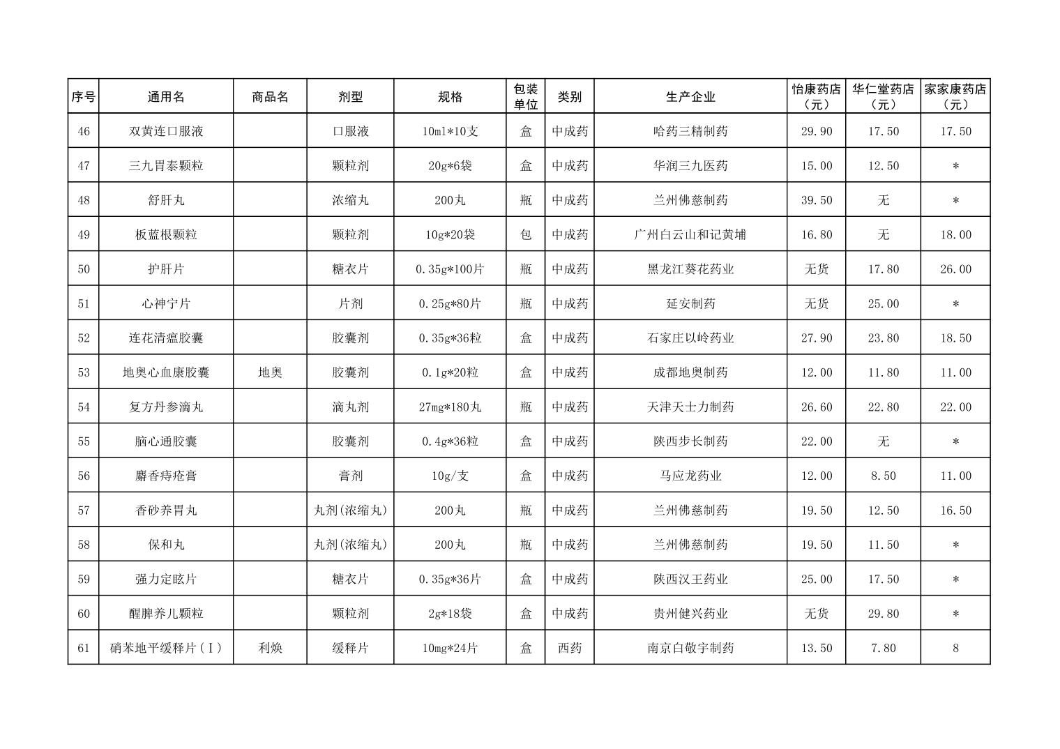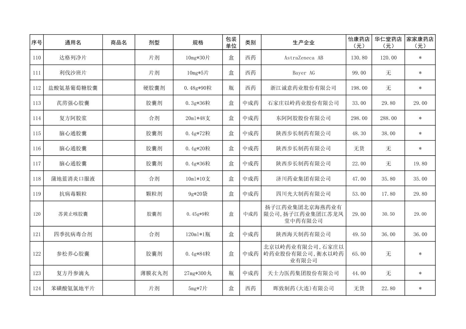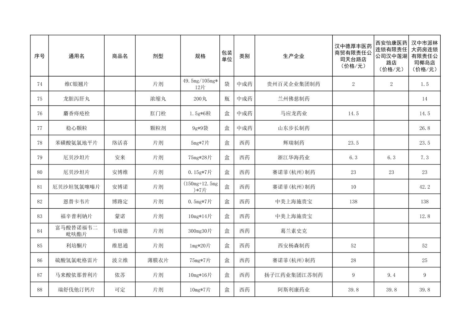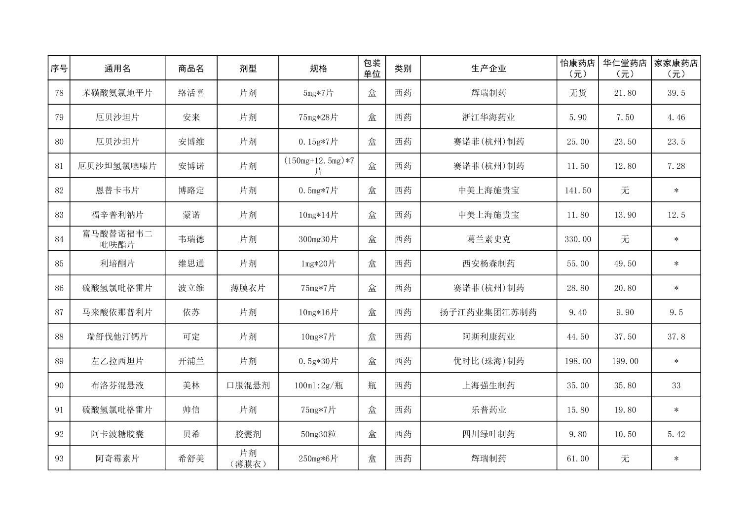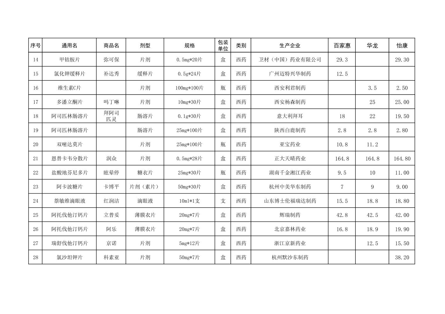 各市(区)部分定点药店常用药品零售价格监测情况 (2025年第12期)