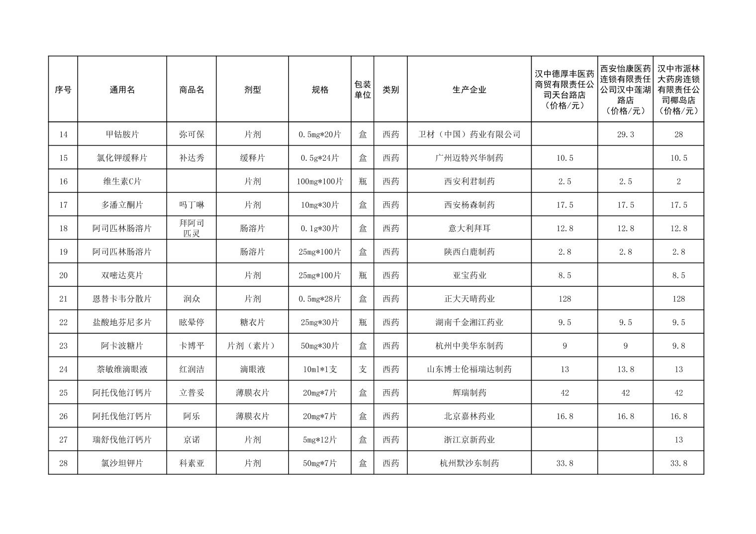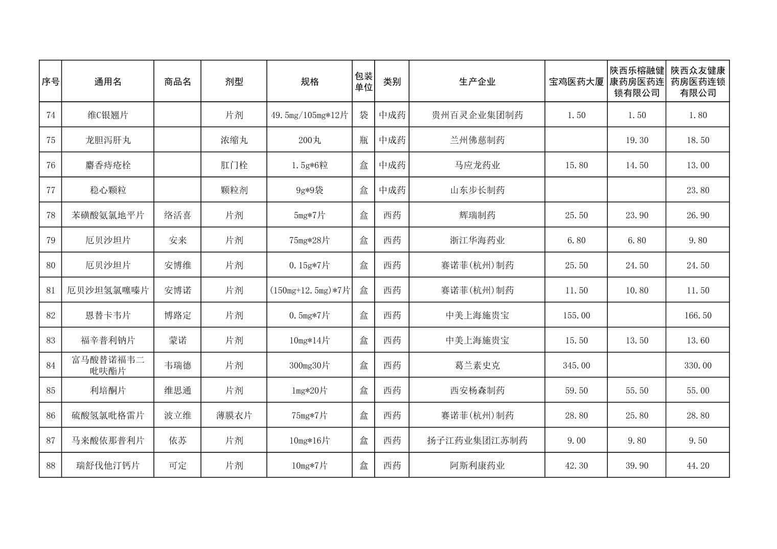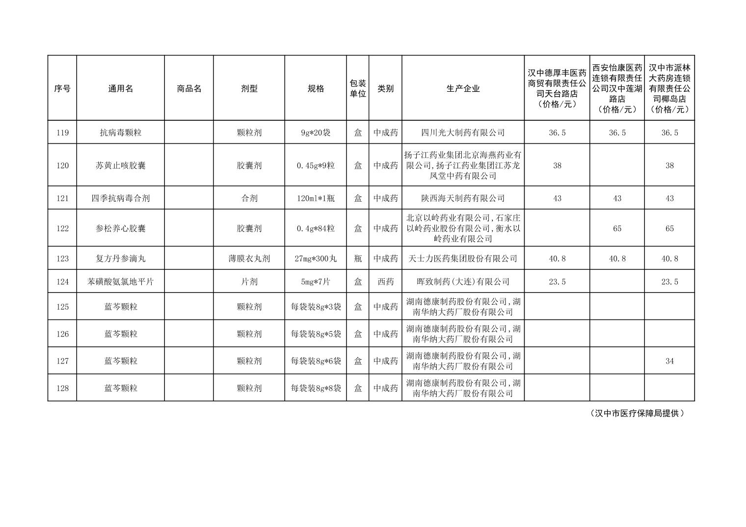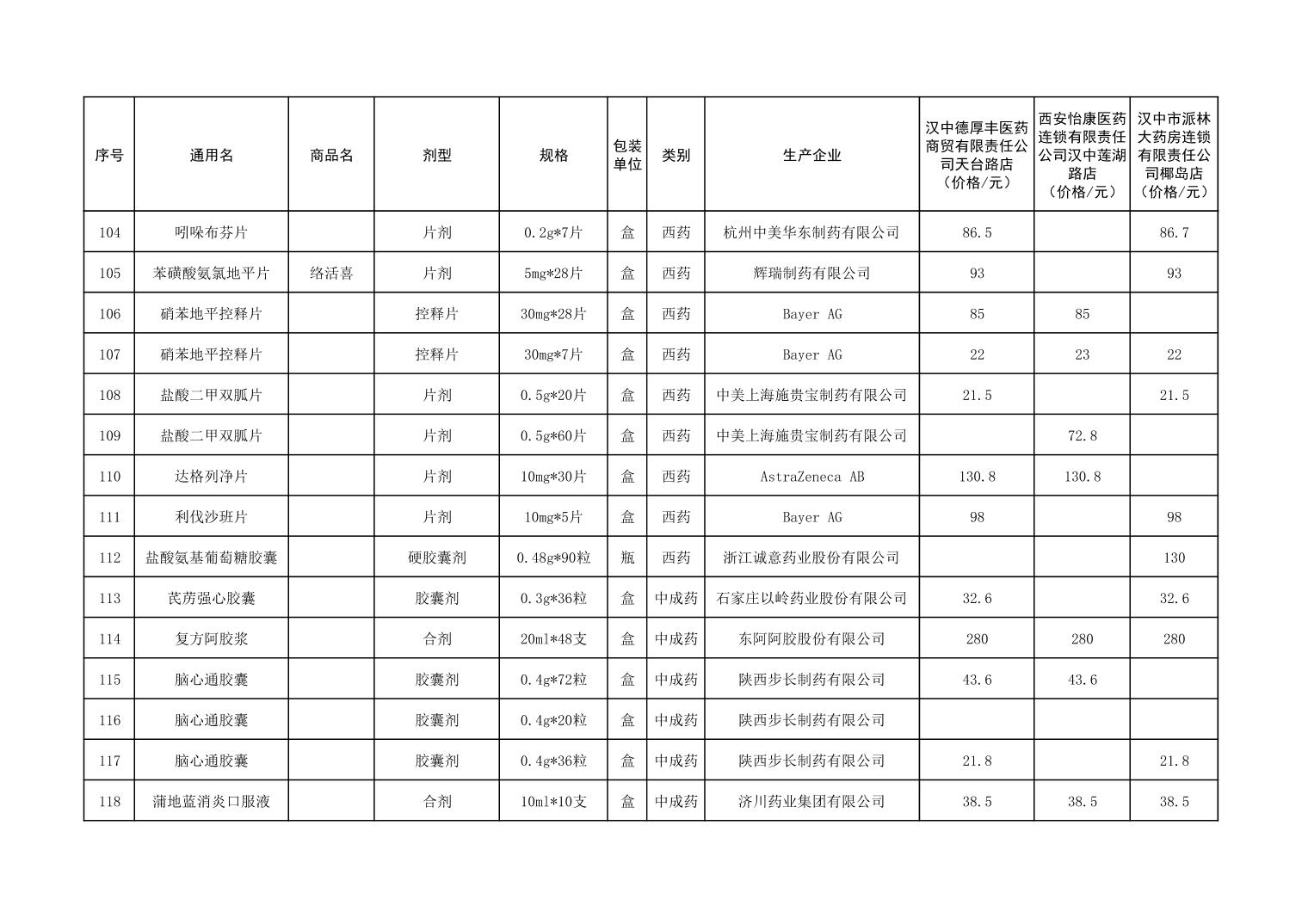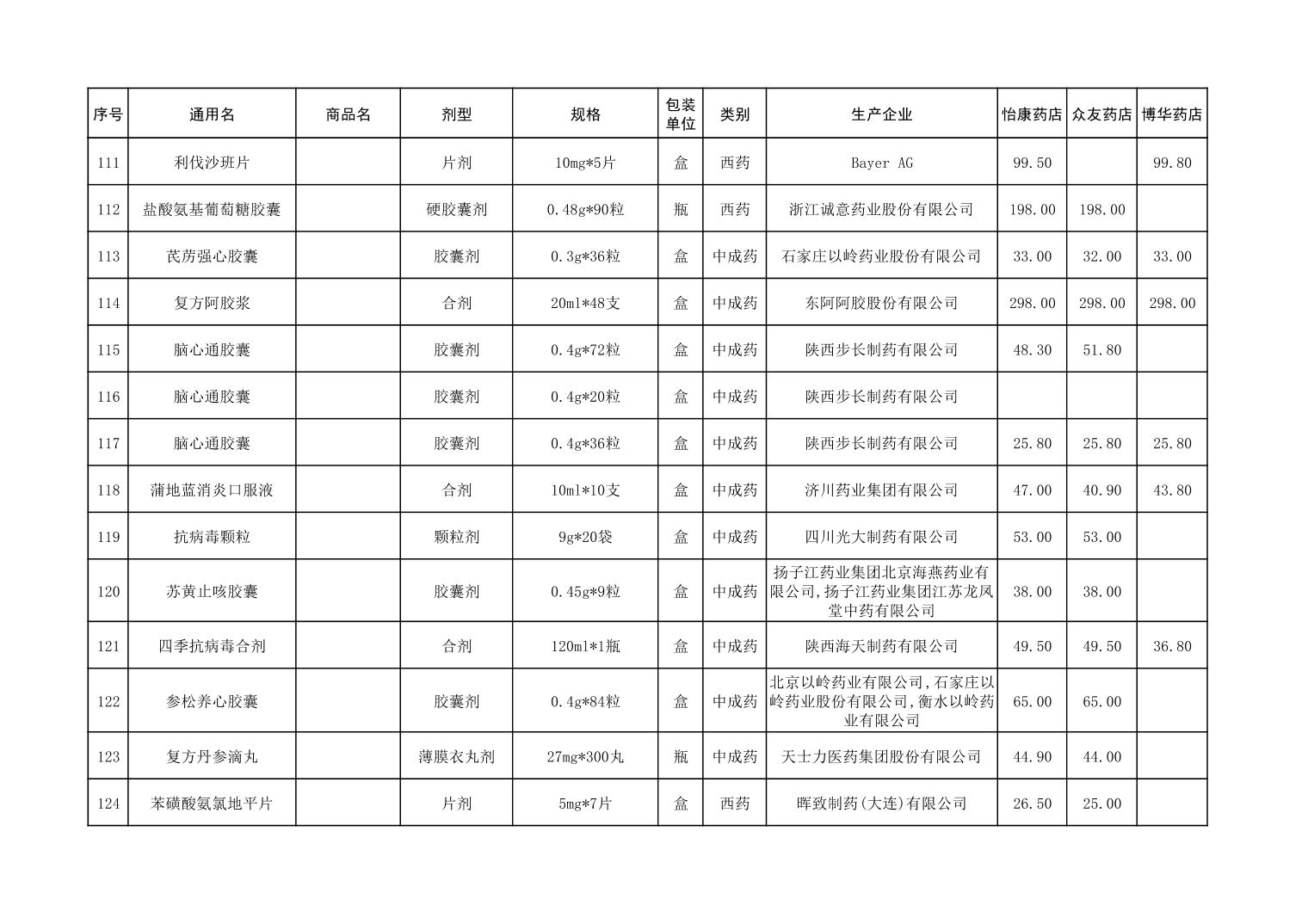 各市(区)部分定点药店常用药品零售价格监测情况 (2025年第12期)