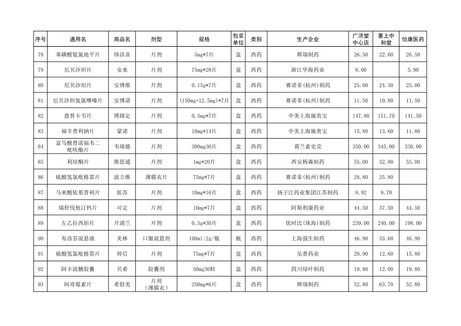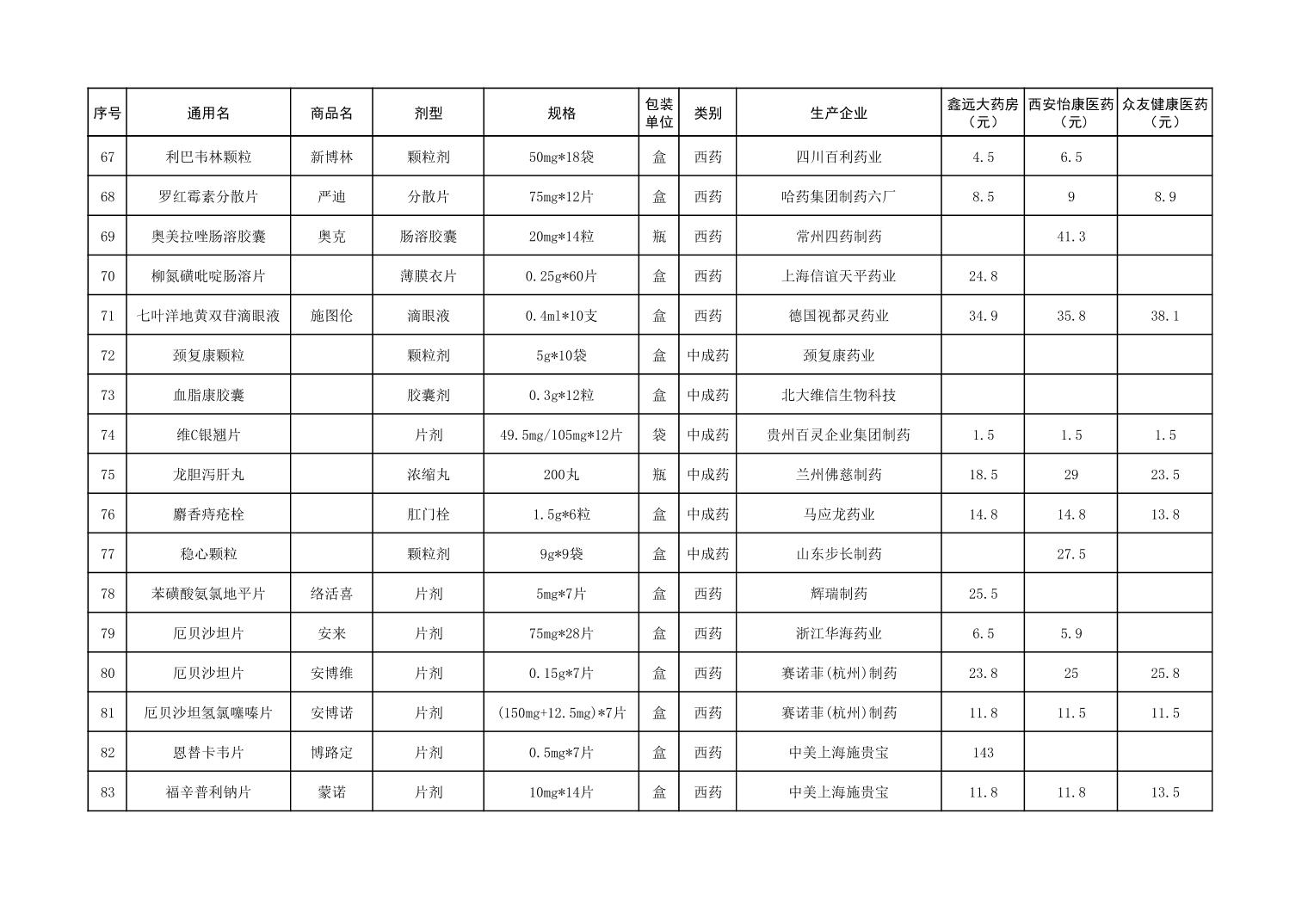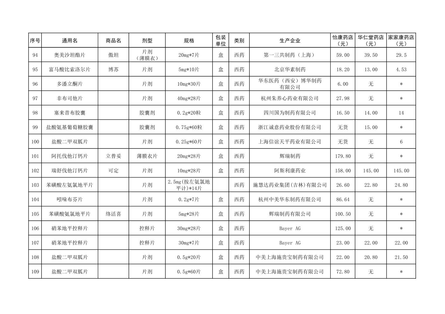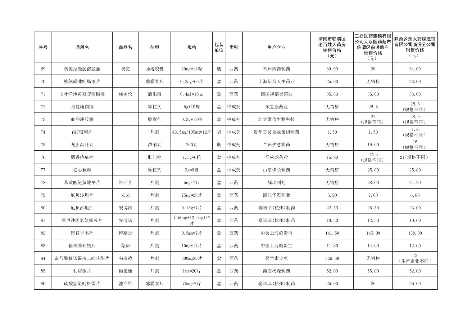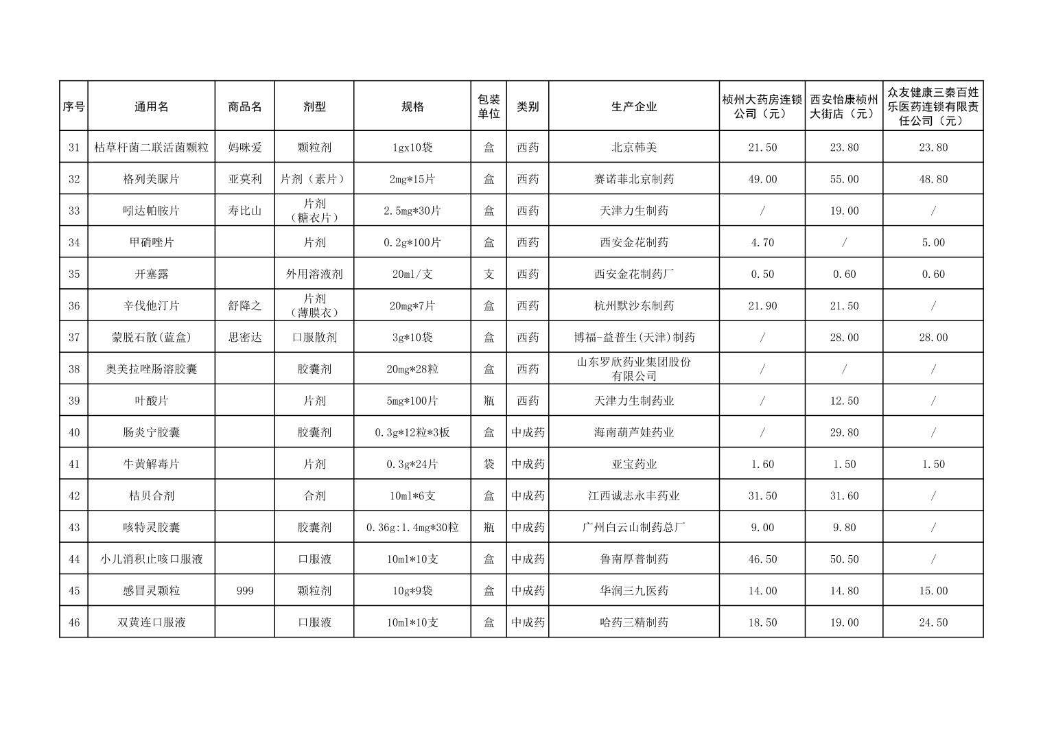 各市(区)部分定点药店常用药品零售价格监测情况 (2025年第12期)