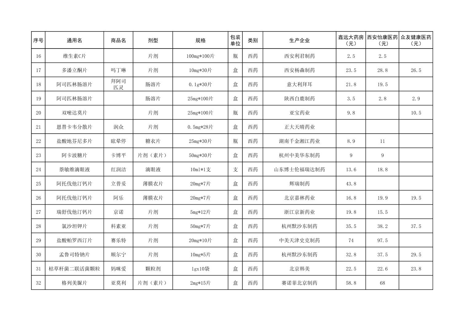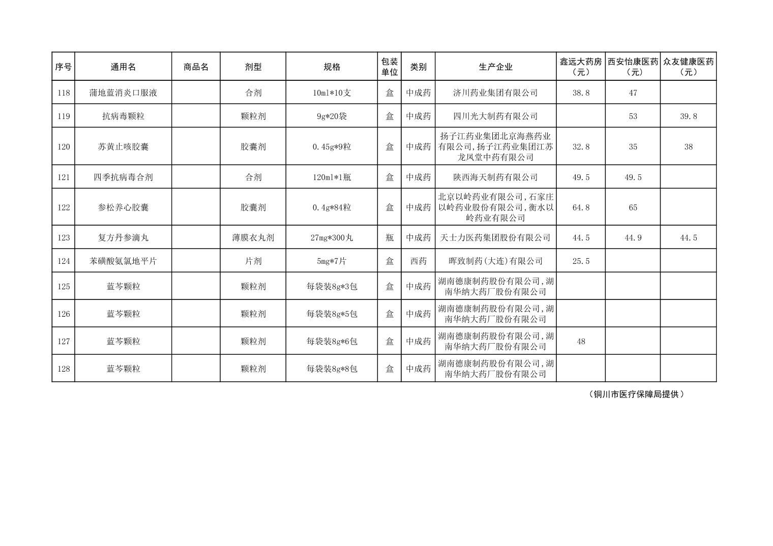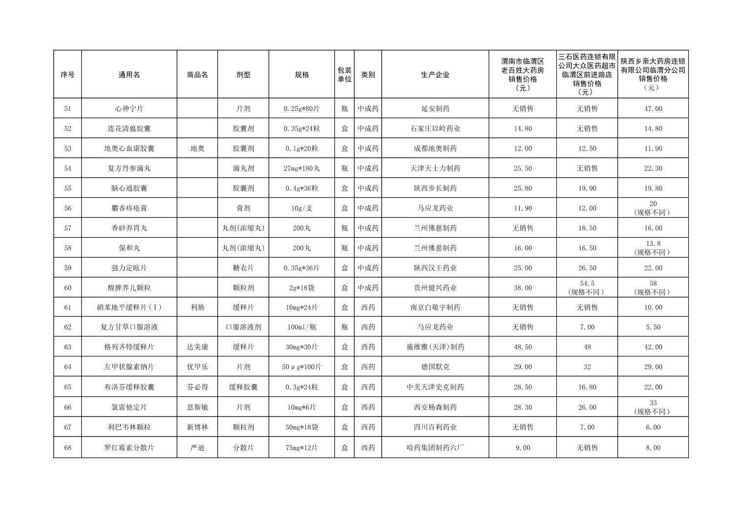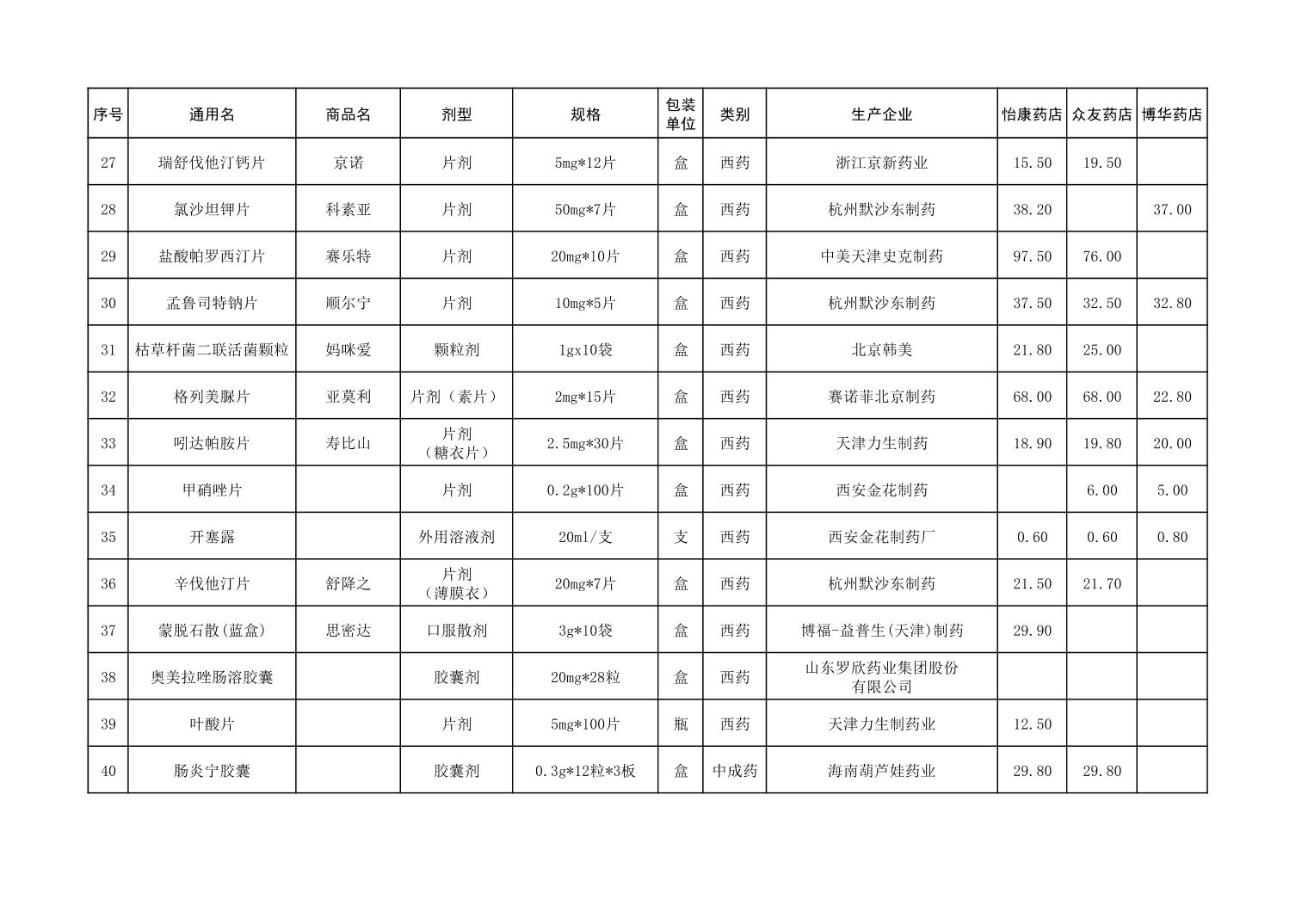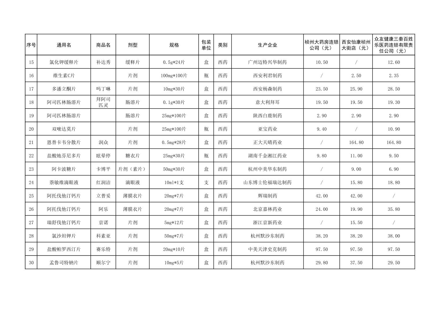 各市(区)部分定点药店常用药品零售价格监测情况 (2025年第12期)