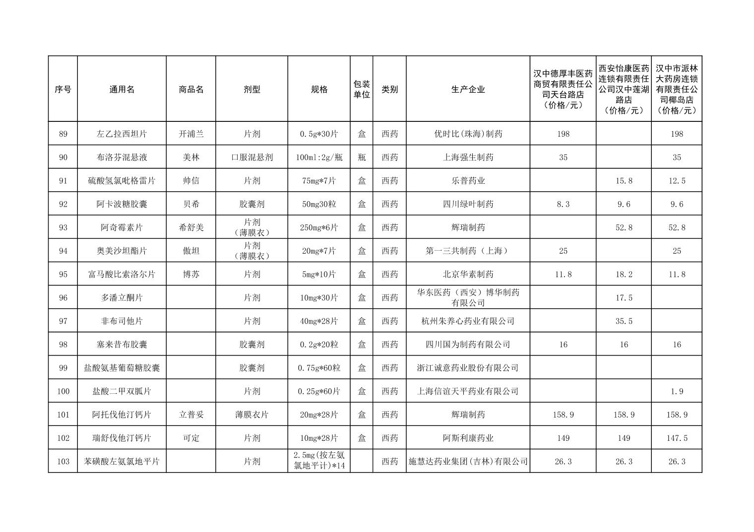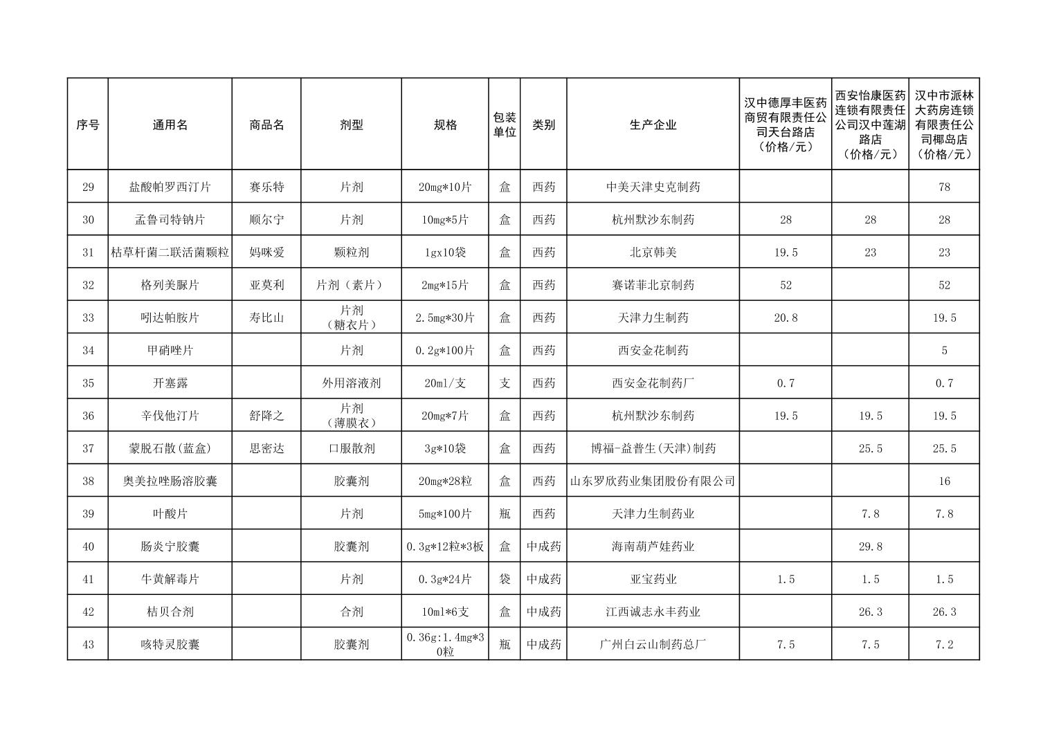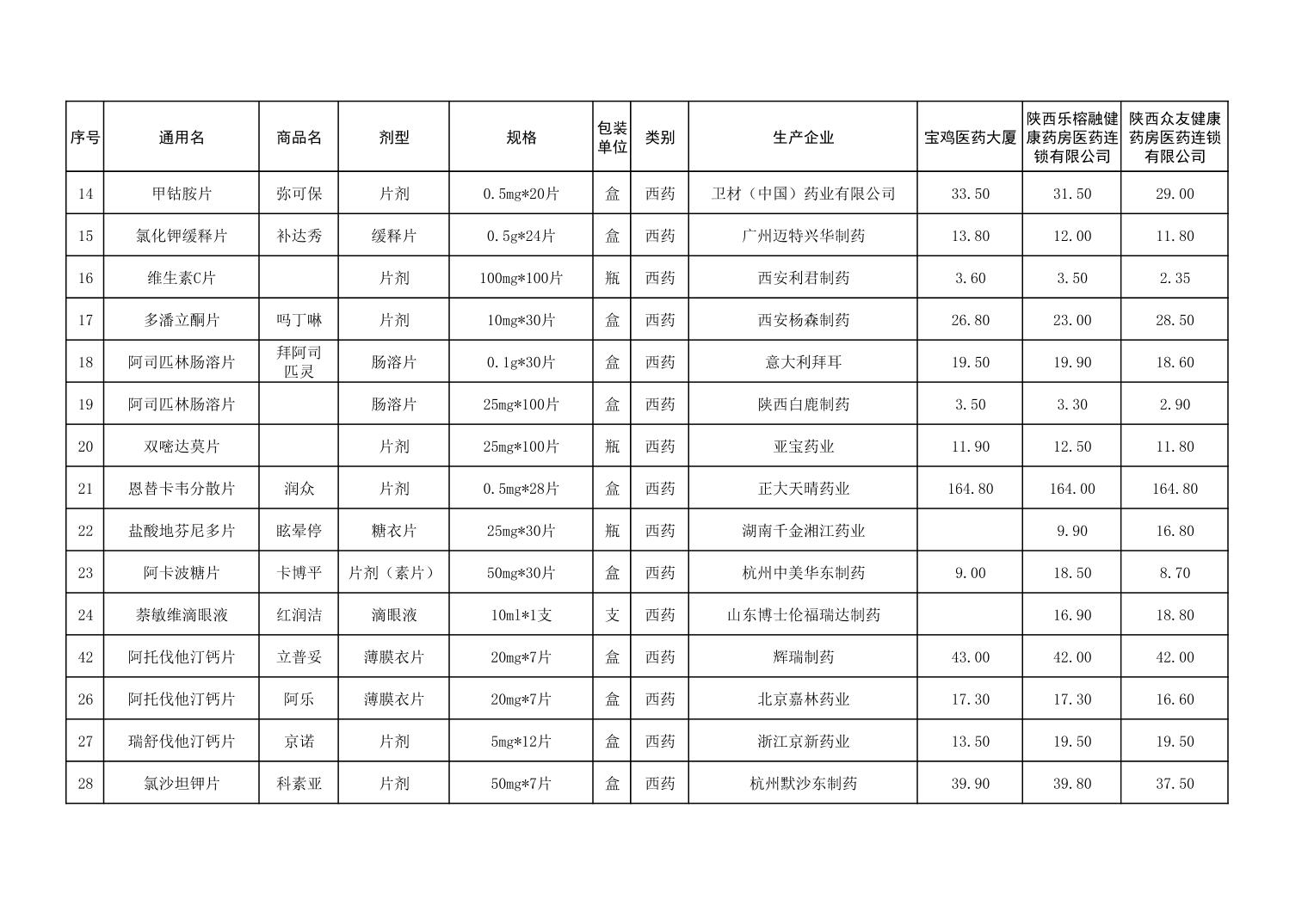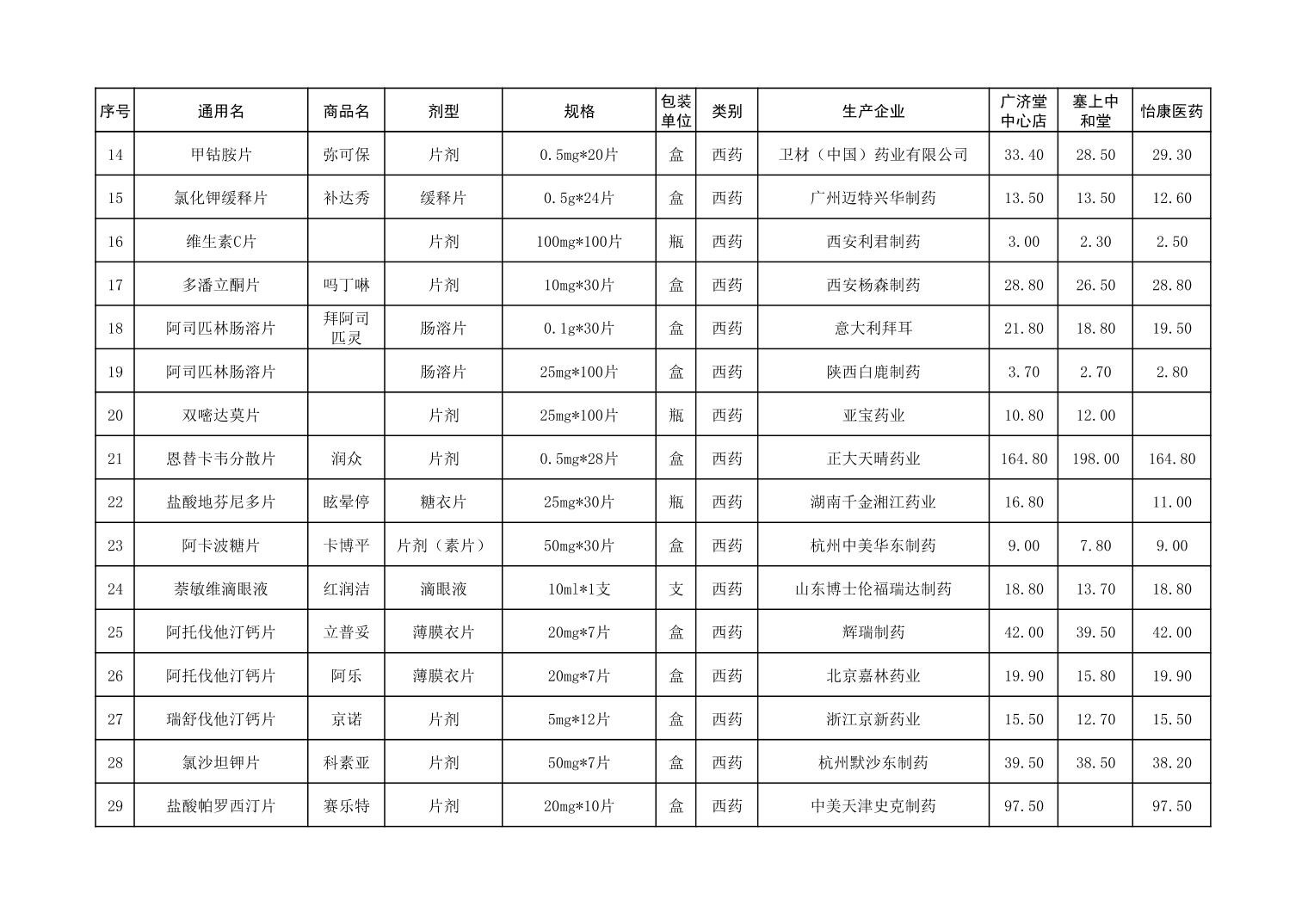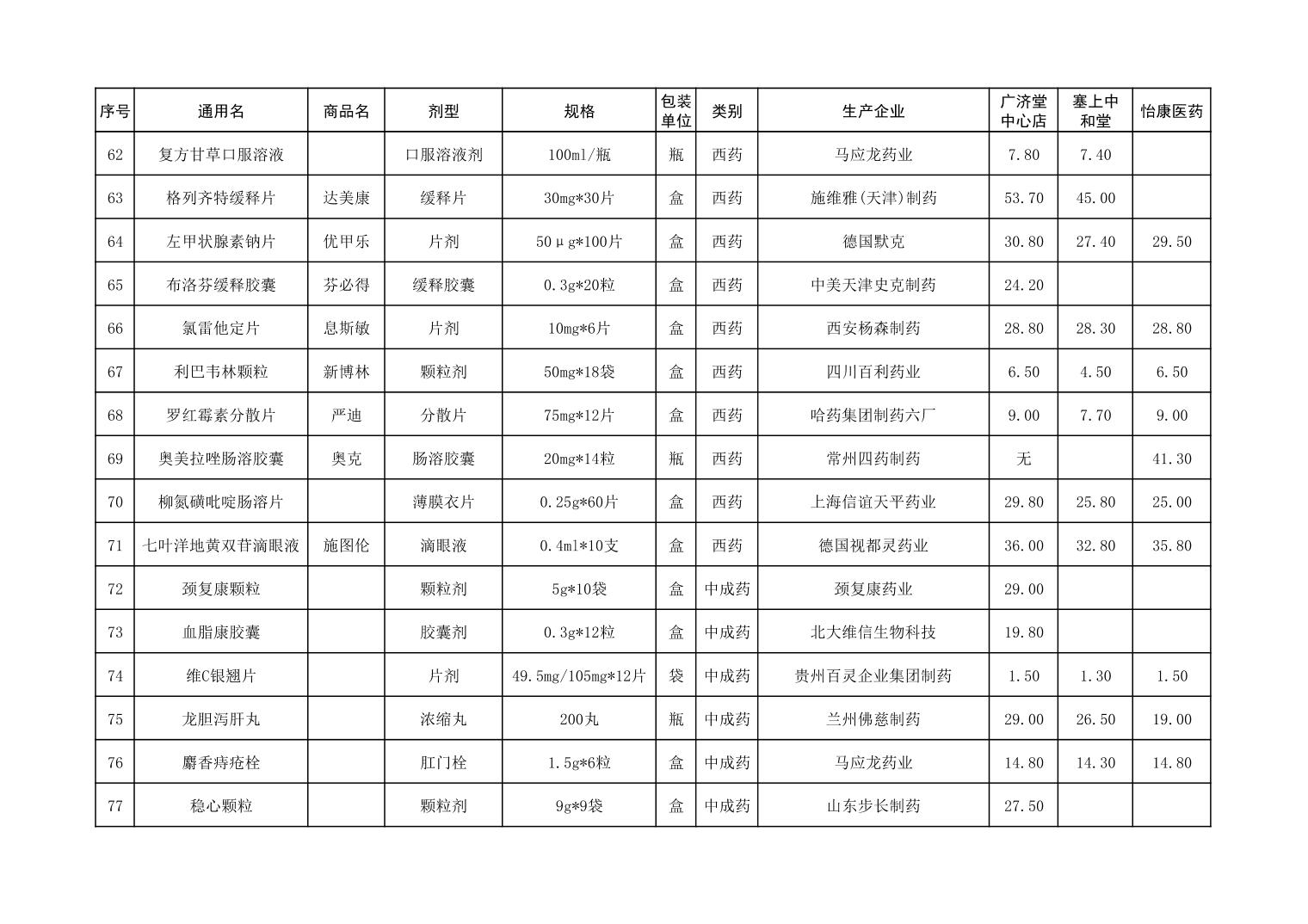 各市(区)部分定点药店常用药品零售价格监测情况 (2025年第12期)