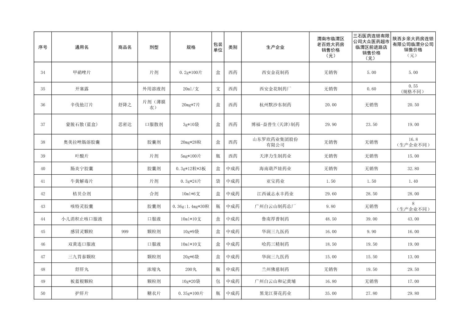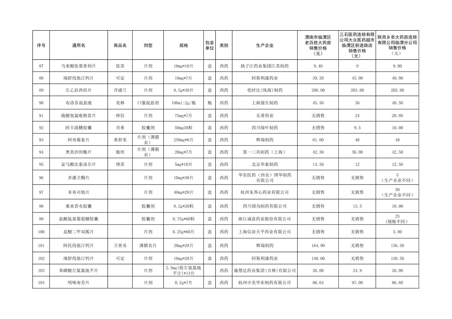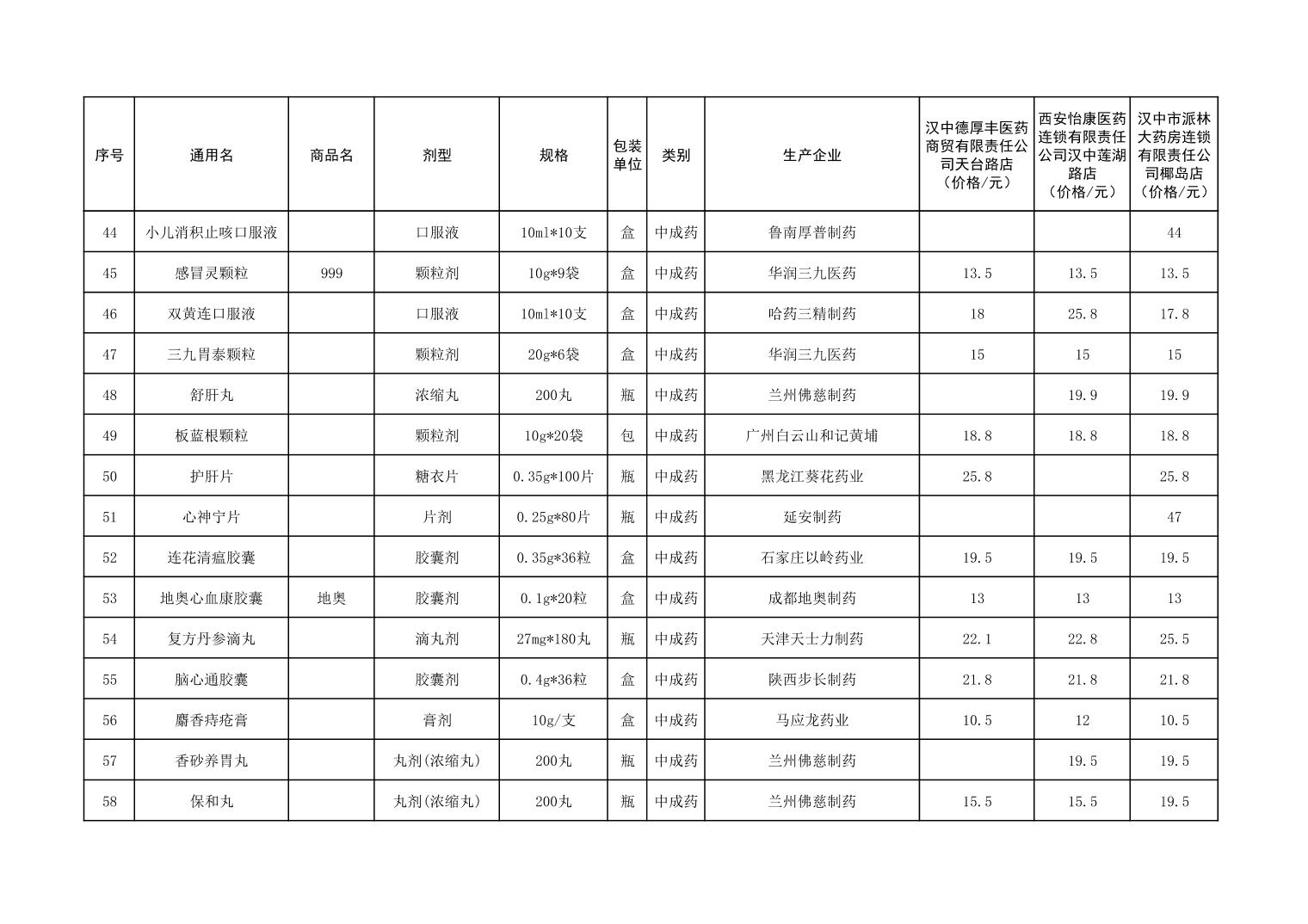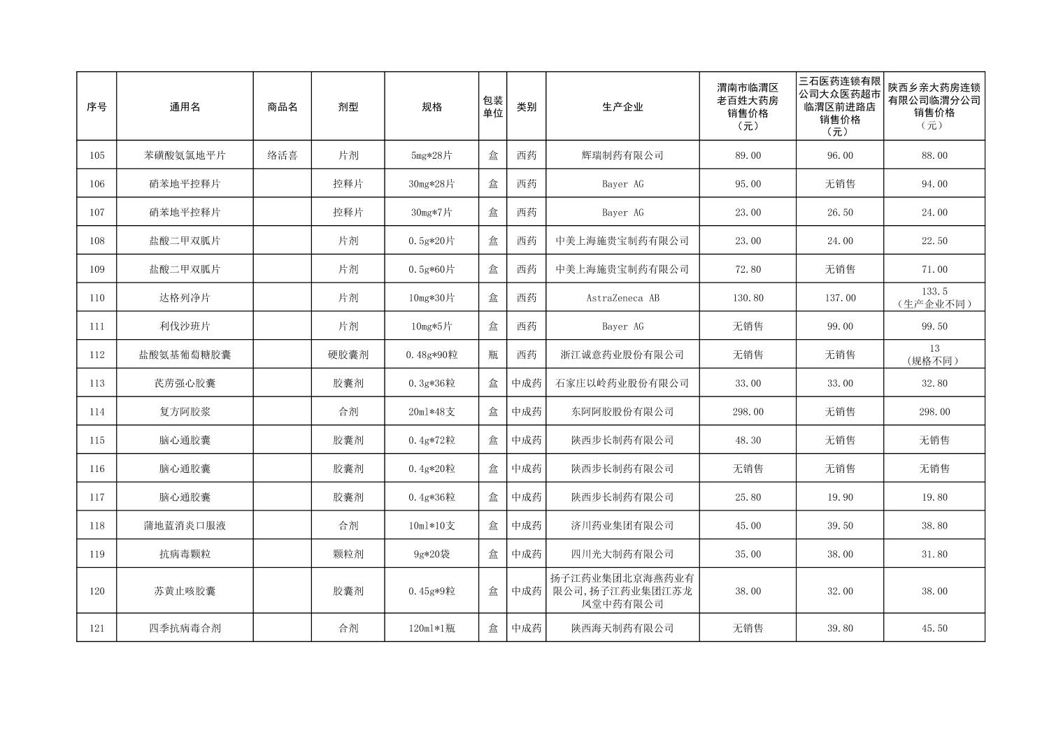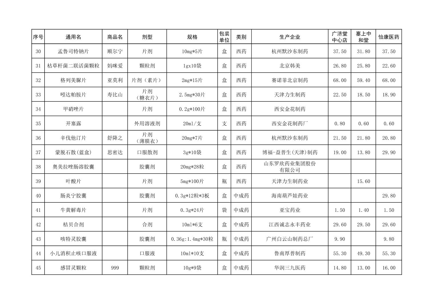 各市(区)部分定点药店常用药品零售价格监测情况 (2025年第12期)